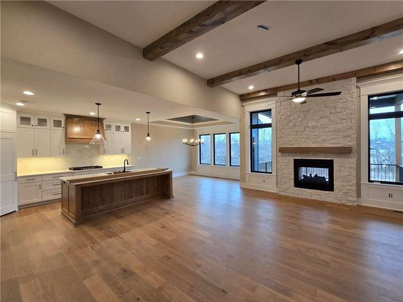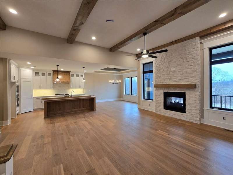 The Phoenix II by Walker Custom Homes is a stunning Reverse 1.5 Story home offering 4 bedrooms and 3 bathrooms on a serene walkout lot backing to greenspace. This home is designed with beautiful details & offers an exceptional outdoor living experience, complete with a wonderful fireplace on your back deck. The great room features enormous windows that showcase the see-through fireplace. The home is spacious and open, featuring vaulted ceilings throughout. The gourmet kitchen is designed for both functionality and style, making it perfect for everyday living and entertaining. The luxurious master suite includes a freestanding tub, designer tile, and a spacious layout that provides both comfort and elegance.Located in Hook Farms, Hunt Midwests newest and fastest-growing Lees Summit community, this home offers access to over 65 acres of green space, a community pool, wooded walking trails, and an upcoming community garden. The community is part of the highly rated Lees Summit school district.