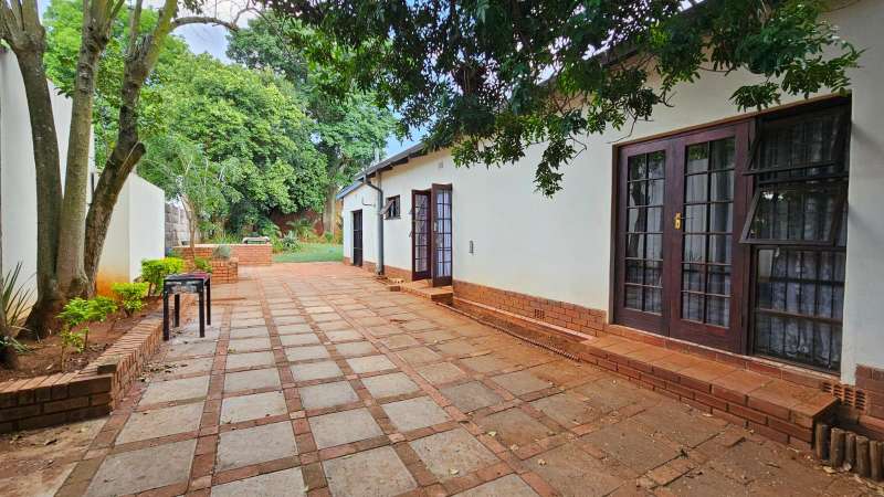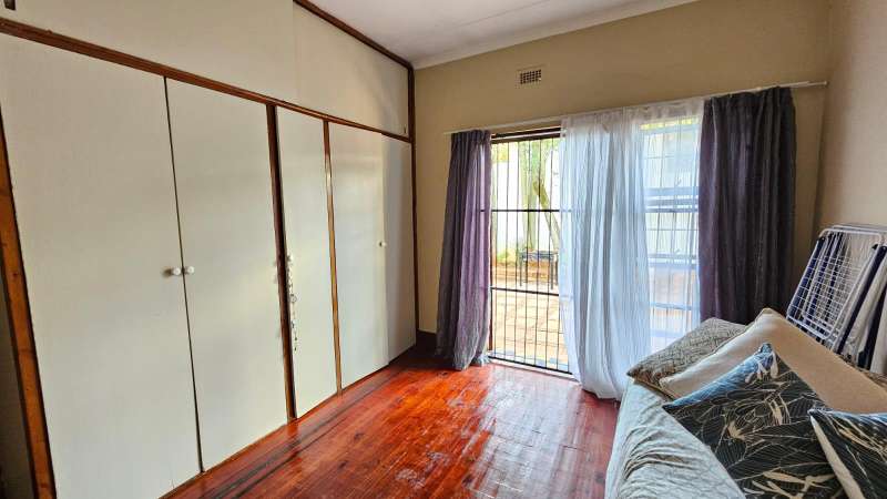 Situated in the heart of Rietondale neighborhood, this property offers the perfect blend of peace and convenience. Centrally located in the Moot area, it provides easy access to the town CBD, making it an ideal choice for business professionals. This spacious home is perfect for a family, with room for grandparents or even the potential to earn extra income from the large flat with its own private entrance. You could also use it as a home office. The main house features 3 generously sized, north-facing bedrooms, each with its own secure outdoor access. There are 2 bathrooms, and 3 living areas. The first living area is bright and airy, reminiscent of a classic sunroom. The lounge boasts beautiful wooden floors and original Oregon pine doors and frames. The dining room has a whole wall of built-in Oregon pine cupboards. The kitchen has been updated with modern cherry wood cabinets, granite countertops, and a dual gas and electric stove. This property is ideally situated within walking distance to Rietondale Primary, Rietondale/Riviera Nursery, and the local park.