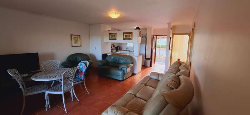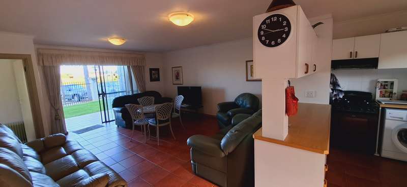 This 3-bedroom, 2-bathroom ground-floor apartment in Hartenbos offers a comfortable and convenient lifestyle, ideal for both permanent living or as a holiday getaway. The apartment is designed with an open-plan layout that seamlessly connects the living, and kitchen areas, creating a spacious feel that’s perfect for family gatherings or entertaining guests. The modern kitchen and the living area opens onto a private patio with build-in braai onto a small garden, offering a great space for outdoor relaxation. The main bedroom includes an en-suite bathroom . The other two bedrooms share a well-appointed second bathroom. Each bedroom is fitted with built-in wardrobes and large windows that let in plenty of natural light. Being a ground-floor unit, this apartment provides easy access without the hassle of stairs, making it suitable for all ages. The complex have secure parking and well-maintained communal areas, ensuring peace of mind for residents. Located close to all amenities, the apartment offers quick access to shops, restaurants, schools, and the beautiful Hartenbos beach. Its central position makes it a convenient base for exploring the Garden Route and enjoying all the recreational activities that this popular holiday destination has to offer.