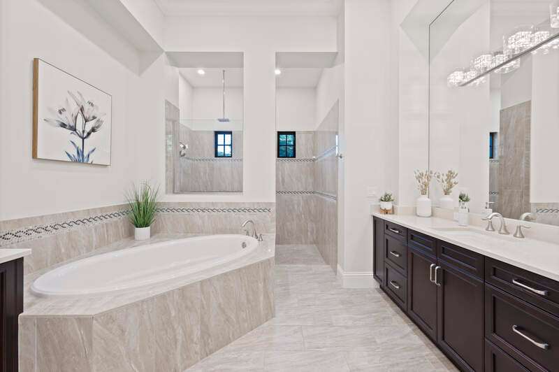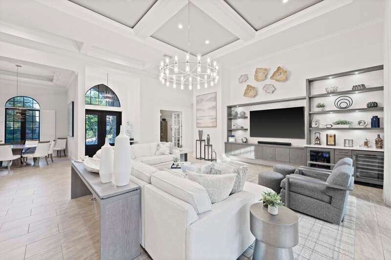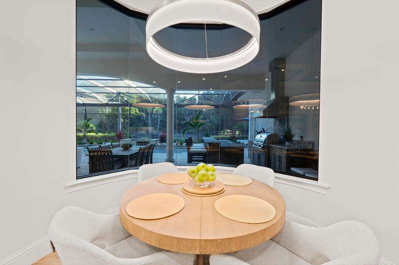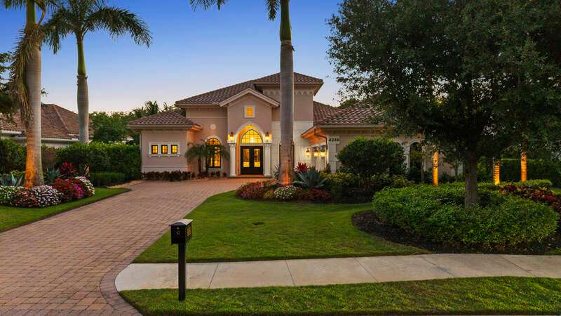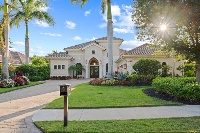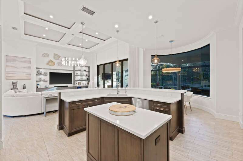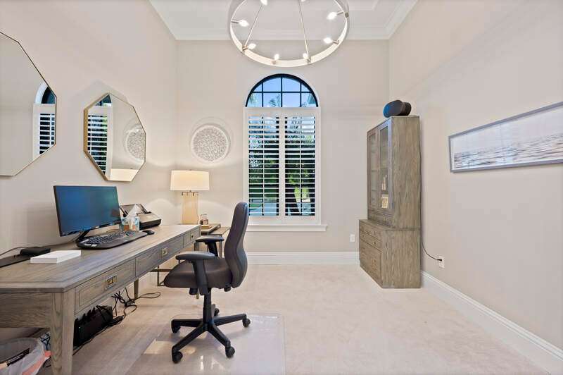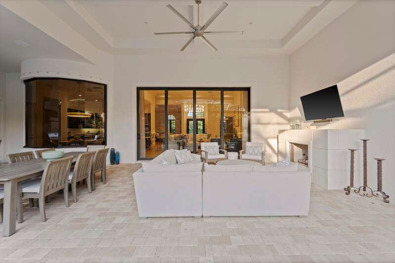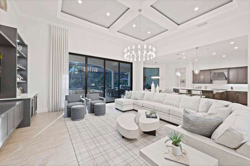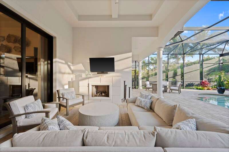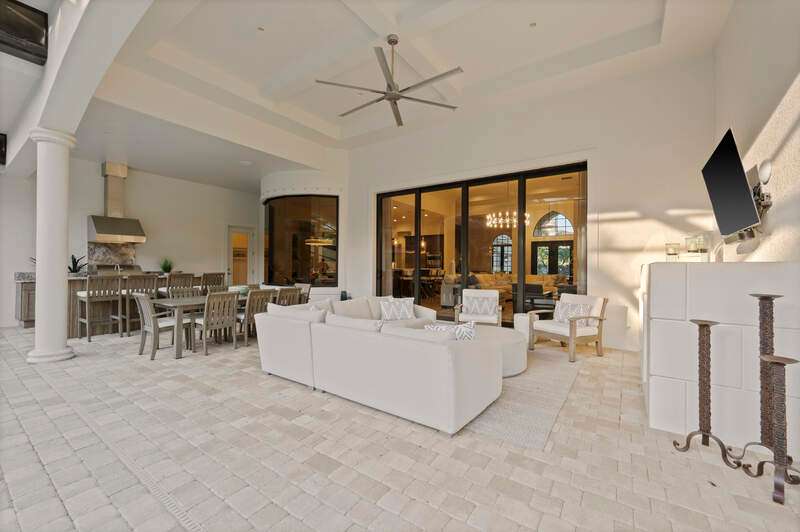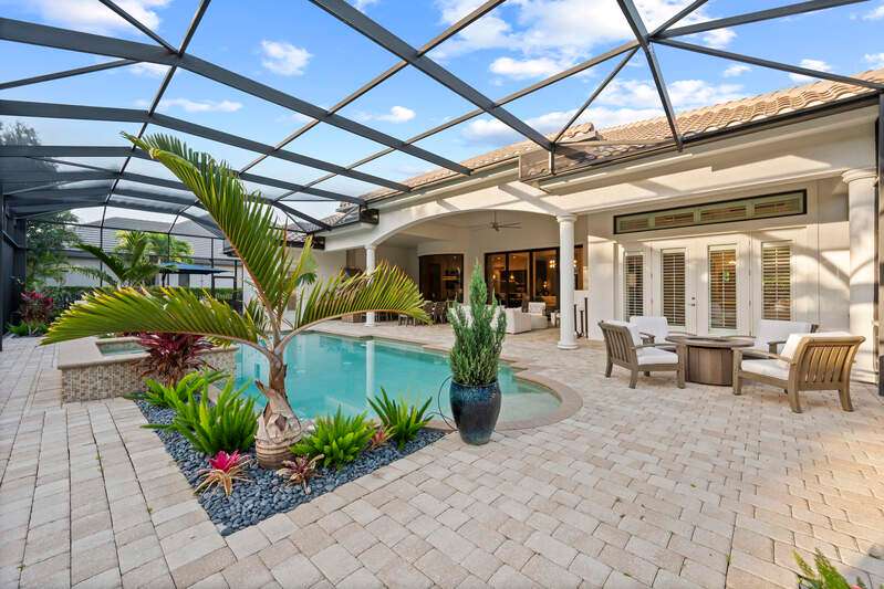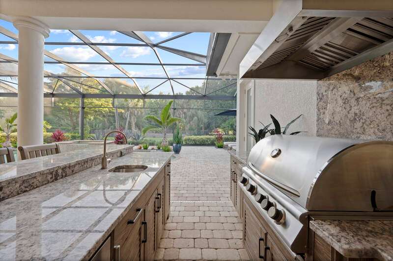 Experience the perfect blend of comfort and style in this newer yet freshly upgraded home thoughtfully inspired by Cardamom Design. Offering the most sought after southwest exposure, the screened lanai features various areas for relaxing, a full outdoor kitchen, built-in fireplace and inviting fire pit plus all-day sun and magnificent evening sunsets. The indoor/outdoor flow delights with a bright, open floor plan and premium finishes end to end- including a gourmet kitchen with upgraded appliances, newer countertops, custom cabinetry and wrap-around island for easy entertaining, a soaring great room with built-in tv wall and wine cooler and clever architectural touches throughout. The primary suite is a private oasis with a spa-like bath and generous walk-in closets while the overall floor plan flawlessly functions to allow privacy for owners and visitors alike. Dine al fresco or step inside to a separate dining room with built-ins or a casual breakfast area. Recently painted inside and out with many upgrades such as an air-conditioned 3-car garage with new built-in storage, Sonos sound system, custom closets and whole house generator, this home captivates at every turn.