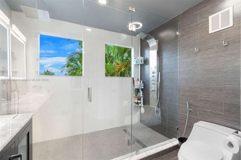 Tucked along a tranquil lake, this Poinsettia Heights gem captures timeless Florida charm with modern updates. The home features impact windows and doors, terrazzo floors, and 10-foot ceilings that enhance its light-filled, open layout. A spacious living room lined with windows offers sweeping lake views, while the renovated primary bathroom adds a touch of luxury. Step outside to the perfect covered lanai and private backyard?an idyllic setting to unwind and watch the sunsets reflect across the water.
