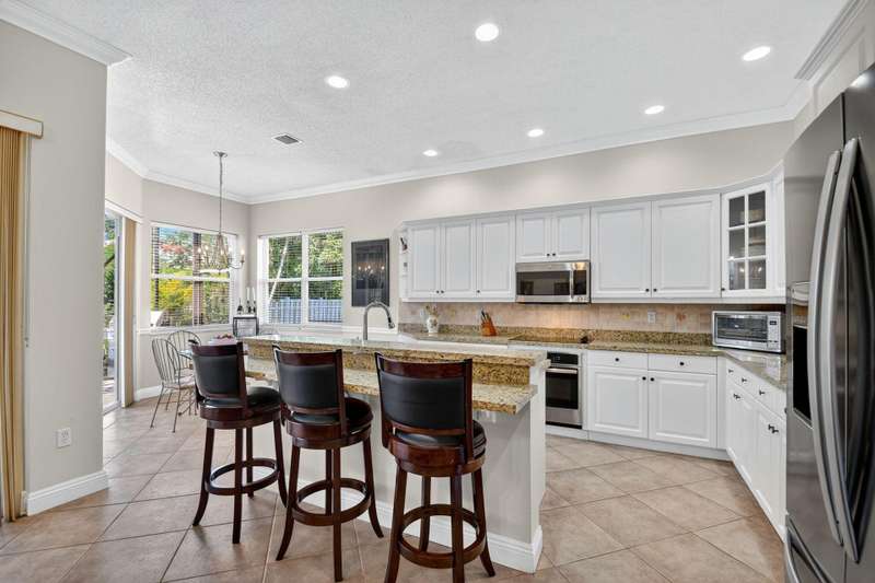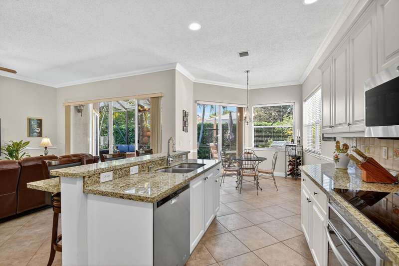 Welcome home to Madison Green! This 3-bedroom, 2-bath home is nestled in one of Royal Palm Beachs most sought-after communities. Youll love the spacious feel of the 3-way split floor plan that offers both comfort and privacy for the whole family. The kitchen is light and inviting, featuring granite countertops, stainless steel appliances, and plenty of cabinet space for all your cooking needs. Each bedroom has beautiful bamboo flooring and generous closets to keep everything organized. Step outside to your own private, screened-in patio, the perfect spot to enjoy your morning coffee or unwind after a long day. Surrounded by lush, tropical landscaping, its a peaceful retreat designed for relaxation and privacy.Madison Green offers resort-style amenities, and a beautiful golf course.