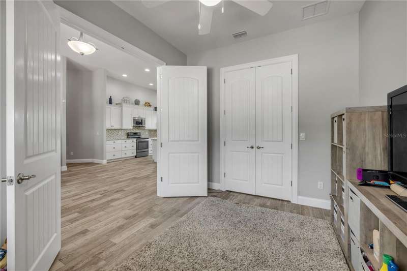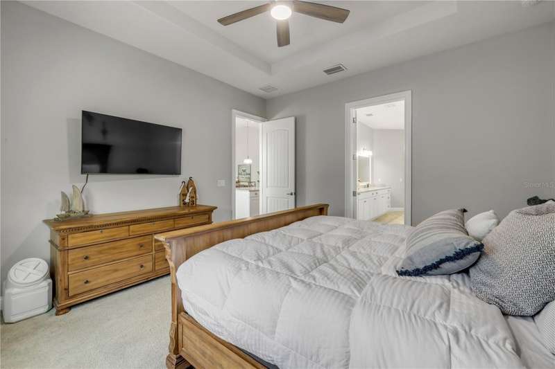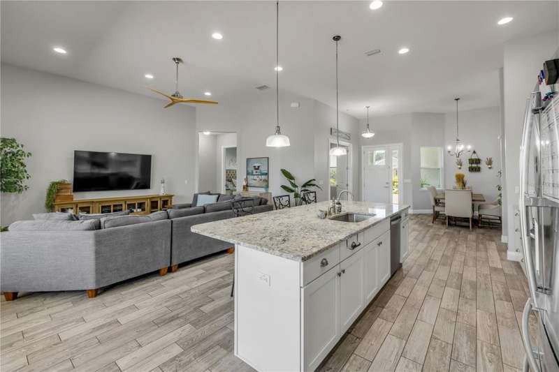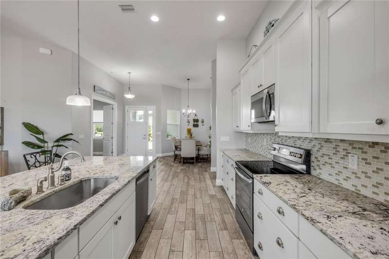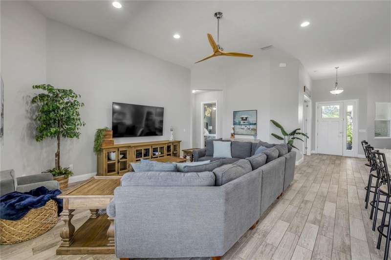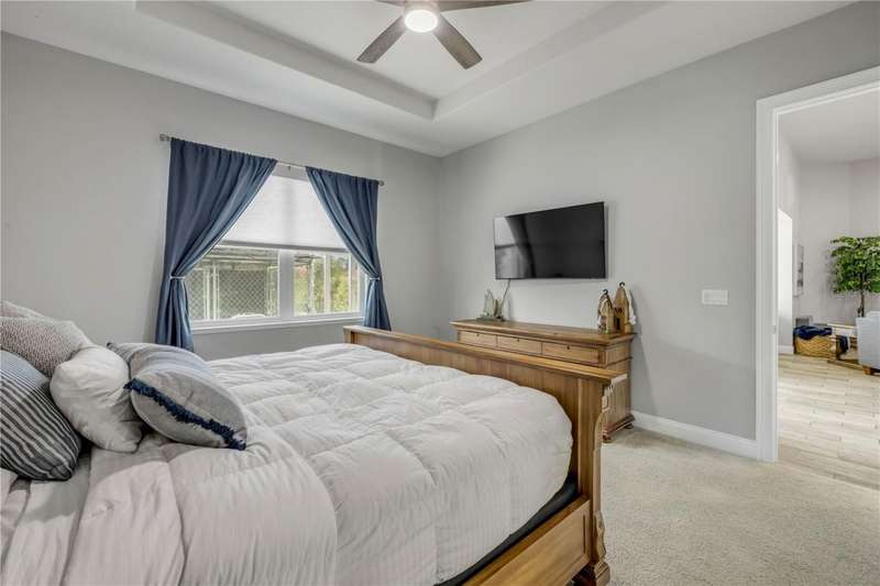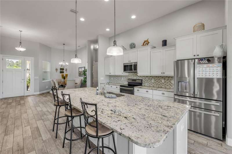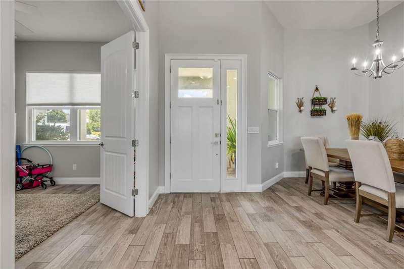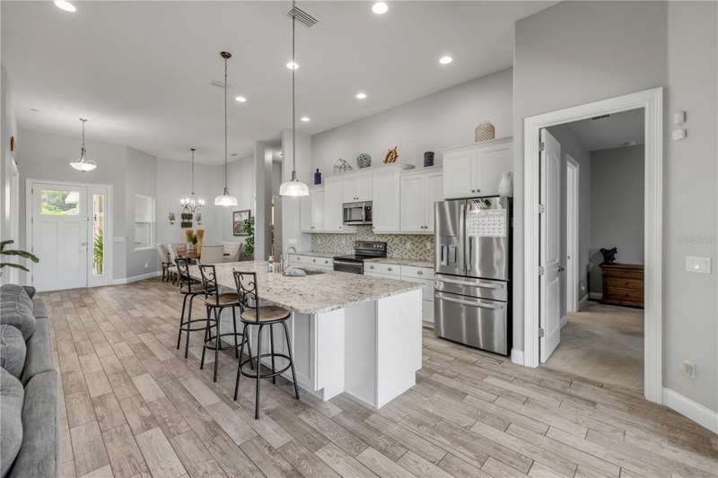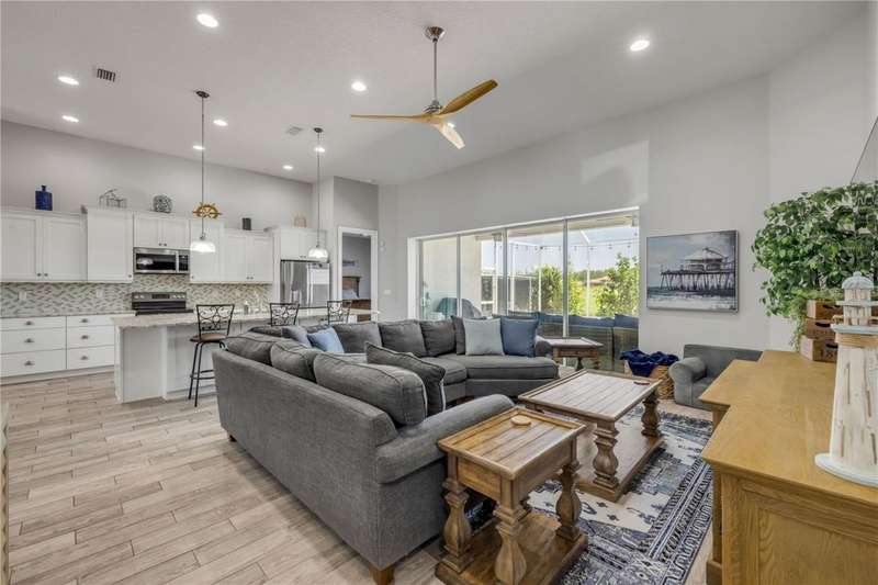 Welcome to 2916 Bella Fore Terrace, a stunning 4-bedroom, 2-bath home advantageously situated on the 10th hole of the Venetian Bay Golf Course within the exclusive gated community of Portofino Gardens. This residence combines luxury, comfort, and low-maintenance living in an ideal setting. A welcoming front porch invites relaxed afternoons and warm greetings, leading into an interior featuring elegant tile flooring throughout the main living areas and plush carpeting in the bedrooms. The flexible fourth bedroom can serve as a home office, media room, or guest retreat to suit your needs. The spacious primary suite offers peaceful golf course views and a large en-suite bath designed for comfort and convenience, featuring an oversized double sink vanity, a walk-in shower, and a relaxing soaking tub. At the heart of the home, a gourmet chef's kitchen boasts an oversized granite island ideal for casual dining, entertaining, or meal preparation. The laundry room with built-in cabinetry adds functionality and extra storage. Sliding glass doors open to a private outdoor oasis-an oversized, pavered, and fully screened-in patio with panoramic golf course views, perfect for BBQs, morning coffee, or evening cocktails. The oversized 3-car garage provides ample space for vehicles, storage, and a golf cart, offering easy access to the course and neighborhood. Additional highlights include a newer AC and water heater, enhancing efficiency and comfort. Nestled within Portofino Gardens and Venetian Bay, residents enjoy a country club lifestyle with a thriving golf community, a vibrant Town Center featuring events, dining, nature trails, parks, and so much more.