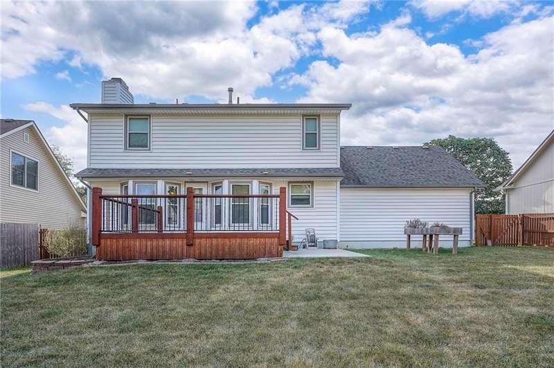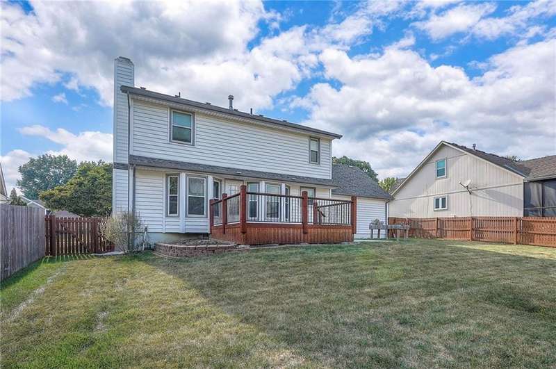 Traditional 2-story in sought after Brooks Farm with 3 bedrooms and 2 full + 1 half bath. Formal living room and great room with fireplace & bay windows (5 new), both with hardwood floors. Kitchen has painted cabinets & bay window and opens to dining room. Kitchen appliances were replaced in 2022 and all stay. Large master bedroom with ensuite & 2 closets. Trex deck is 3 years old and overlooks fenced backyard. Large unfinished basement with built-in shelves, large cedar closet and work table with overhead light. Amazing location is close to restaurants, shopping, lakes, and highway access. Walking distance to awarding winning Lee's Summit elementary & middle schools!