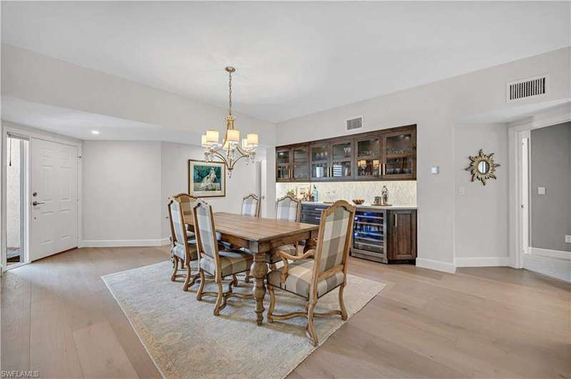 Not to be missed San Marino Condo in Pelican Bay! Fabulous renovation with top of the line features. Current owners did an extensive renovation and used quality material throughout. Gorgeous wide plank white oak flooring in main living and kitchen. Open Kitchen with custom wood cabinets, quartz counter tops, marble backsplash, Sub*Zero Refrigerator, Wolf Induction cooktop. Pantry wall of cabinets. Extensive built in bar with wine fridge in dining area. Renovated primary and guest bathrooms with custom cabinets and beautiful tile selections. Tasteful furnishings, custom window treatments. New cabinets in laundry room. Quality and care throughout. San Marino offers residents it's own pool, spa, grills, fitness room and social space. It is a also Pet Friendly community allowing 2 pets under 45 pounds OR 1 under 70 pounds. San Marino is conveniently located just across the street from the private Pelican Bay tram stop for quick and easy beach access. Residents of Pelican Bay, enjoy exclusive access to all its premier amenities, including 2 private beachfront restaurants and bars, attended beach service, kayaks, paddle boards, 18 Har-Tru tennis courts, an advanced fitness center, pickleball coming soon, and scenic nature trails for walking and biking. Perfectly situated near Artis Naples, Waterside Shops, and Mercato.