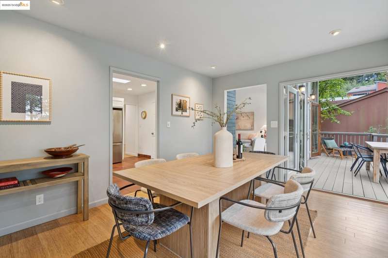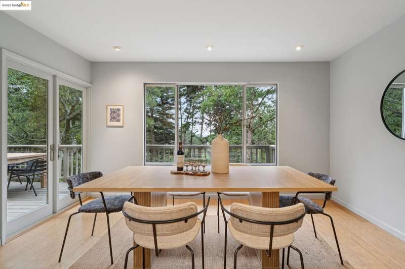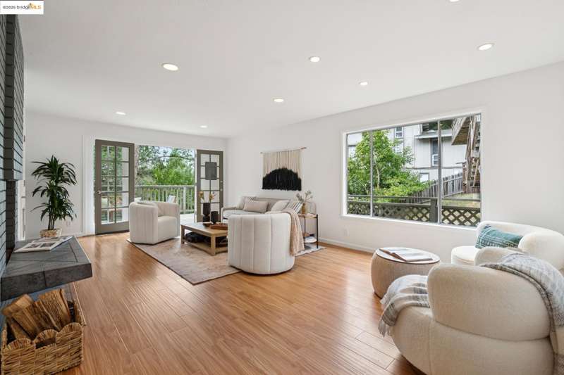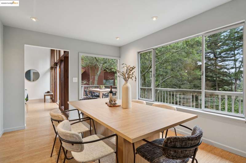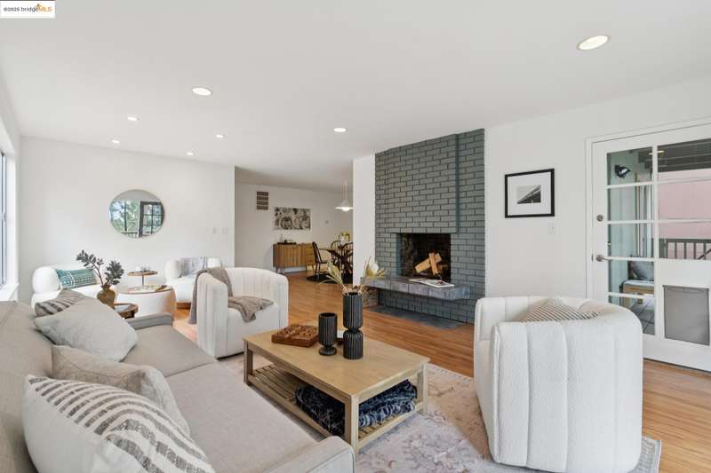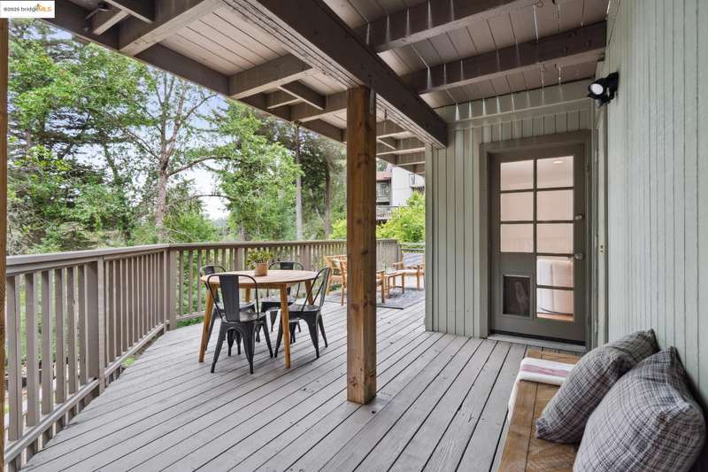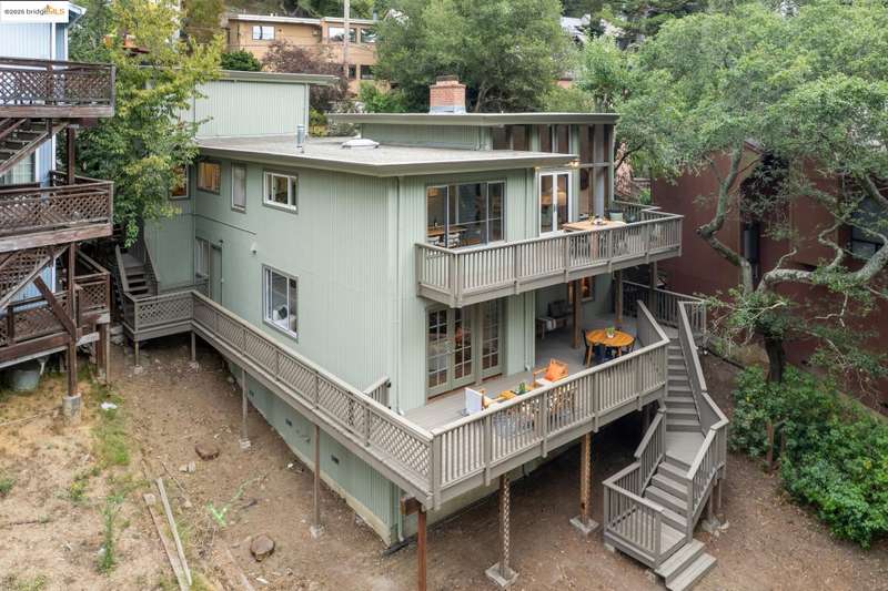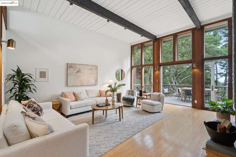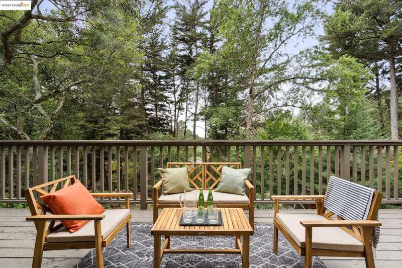 Lovingly held by one family since 1985, this 3,322 sq ft* Montclair retreat blends nature, space, and comfort just minutes from the Village, regional parks, and freeway access. Tucked among trees, the home radiates a sense of calm, beginning with a front patio framed by built-in seating. Inside, the vaulted living room with beamed ceilings, fireplace, and floor-to-ceiling windows connects seamlessly to a sunny deck overlooking the garden. The dining room and skylit kitchen with stone countertops, a gas range, and a pantry make everyday living and entertaining a breeze. Upstairs are 3 bedrooms** and 2 baths**, including a primary suite with patio access. The flexible lower level offers a second living area with a fireplace, full bedroom, bonus room, bath**, and kitchenette***—plus a private deck and lush garden views. A detached 2-car garage, ample storage, and recently replaced driveway deckboards (Sept. 2025) complete the picture. A rare opportunity to live in harmony with nature and still stay close to it all. The bed and bath count differs. Buyer to investigate.