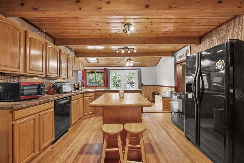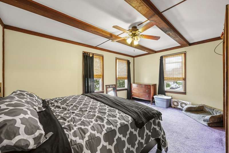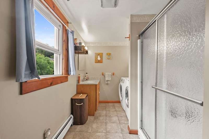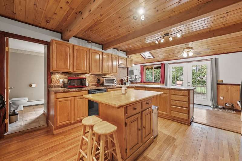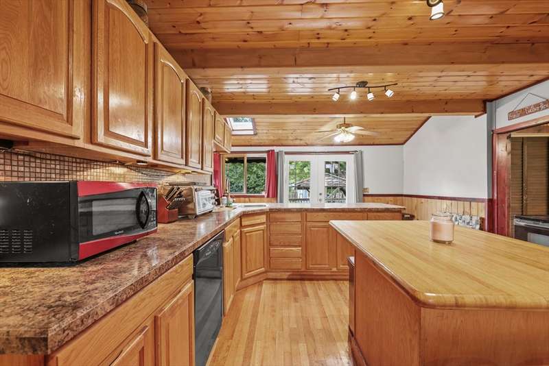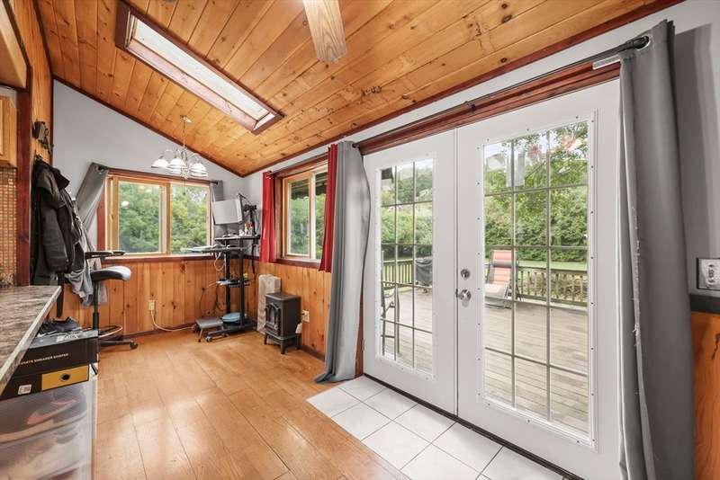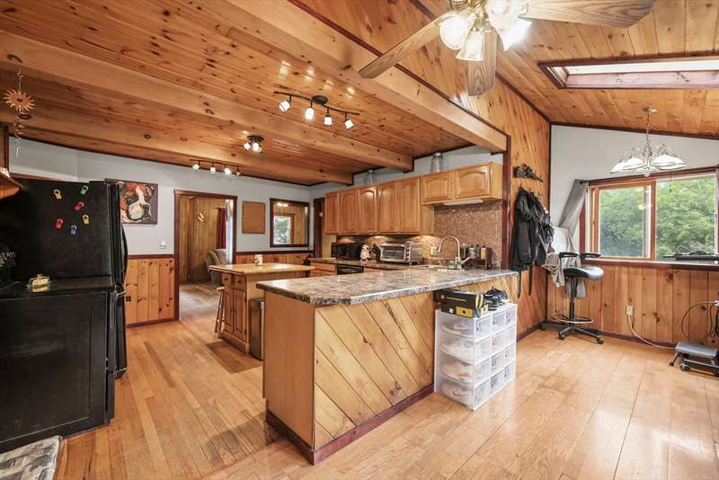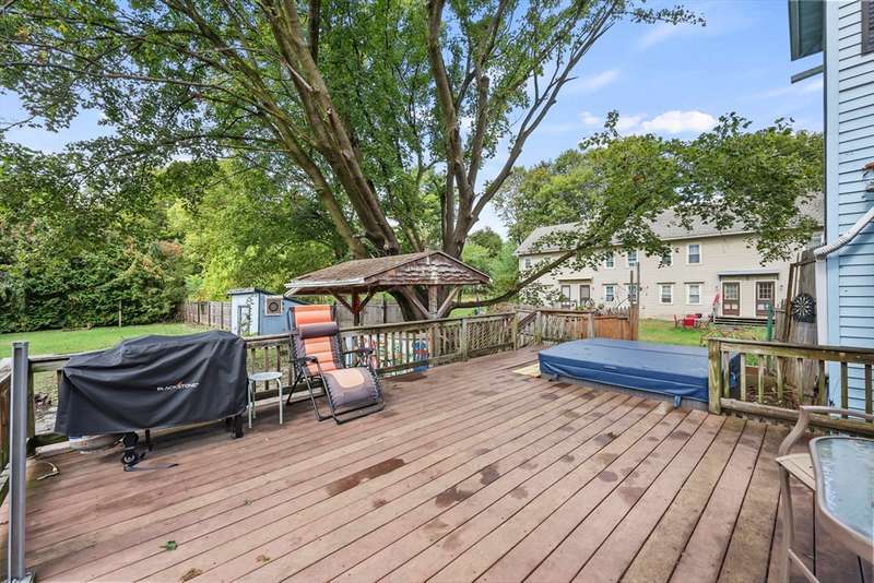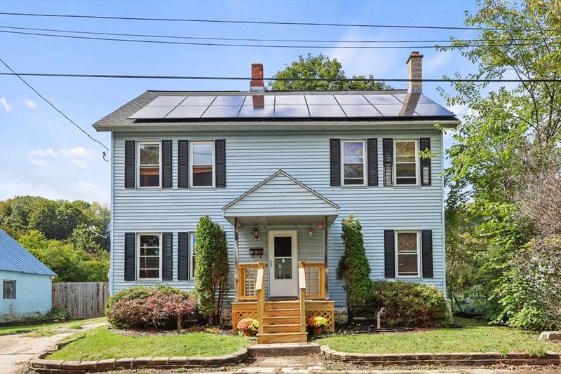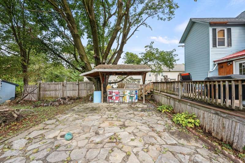 Move-in ready and thoughtfully upgraded, this spacious home combines comfort, efficiency, and convenience. Recent improvements include a brand new roof, solar panels, updated 200-amp electric, & a high-efficiency natural gas heating system with multiple zones. The bright kitchen features an island, new skylight & new French doors to a large back deck. The living room offers a cozy gas fireplace insert, while two updated bathrooms plus first-floor laundry add everyday ease. Enjoy excellent attic storage, a newly built front porch, and a private, fenced backyard with a stone patio & indoor/outdoor bar area, ideal for entertaining. A two-car garage provides added storage & convenience. This home is the perfect blend of smart updates & inviting spaces, ready for you to move in & enjoy