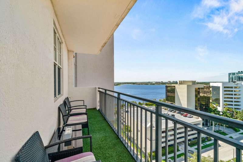 Rare 14th floor northeast corner unit available in Downtown West Palm Beach! Unit features 2 ensuite bedrooms, private wraparound balcony with unobstructed city views. Updated throughout with ceramic tile flooring, new kitchen cabinetry, quartz counter tops and appliances, new washer/dryer and updated bathrooms. Gated covered parking for 2 vehicles. Pets allowed. New Roof and Building A/C 2024. Investor friendly, buy today, rent tomorrow! Resort style amenities include fiberoptic internet, 24 Hour front desk concierge, resort style pool w/jacuzzi, BBQ grill area, gym, social room w/TV, bar & billiard table, cyber business center, bike storage. EV charging available. Only minutes to Clematis Street, City Place, NORA, Flagler Drive, Palm Beach Intl Airport, I-95, the Brightline & Tri-Rai