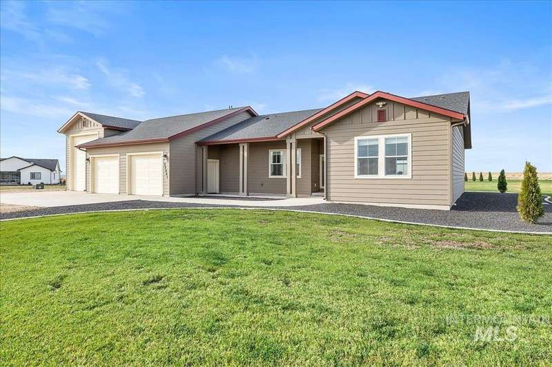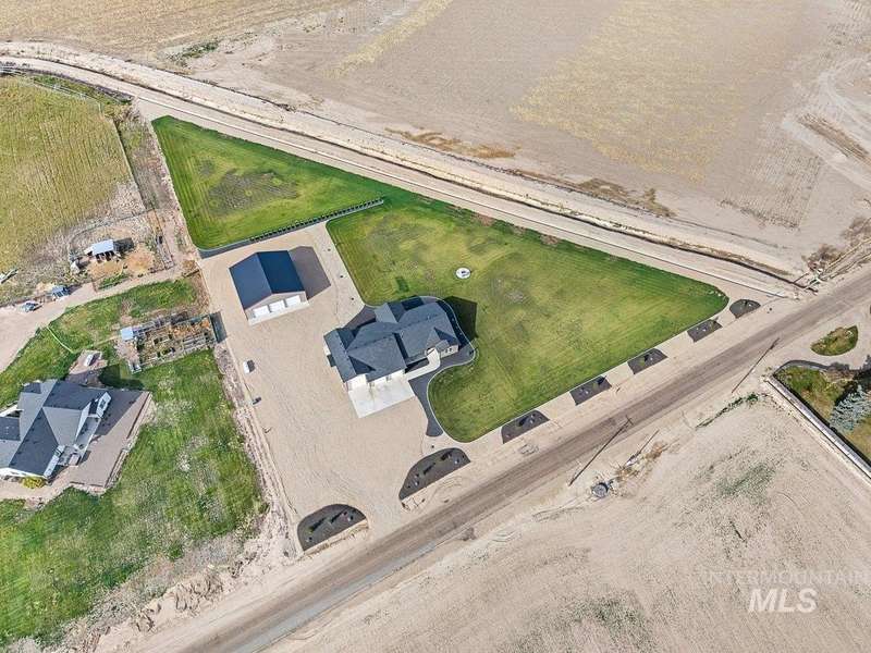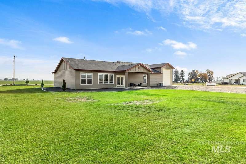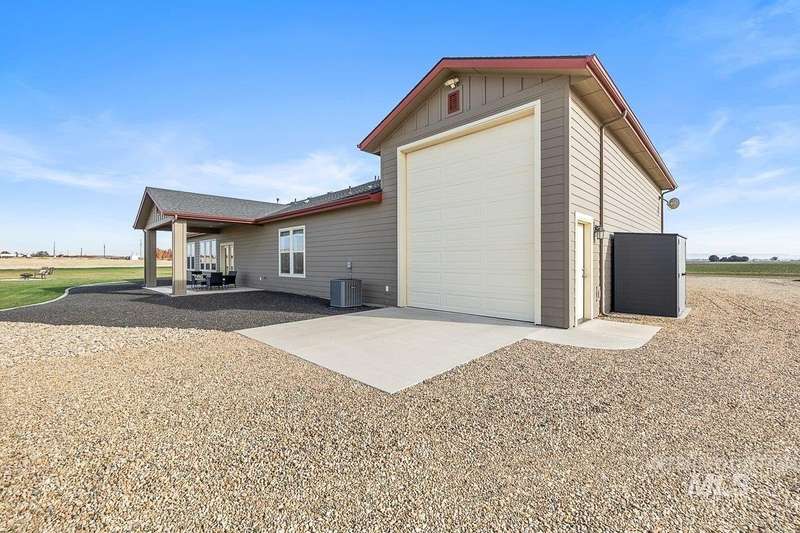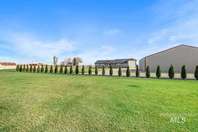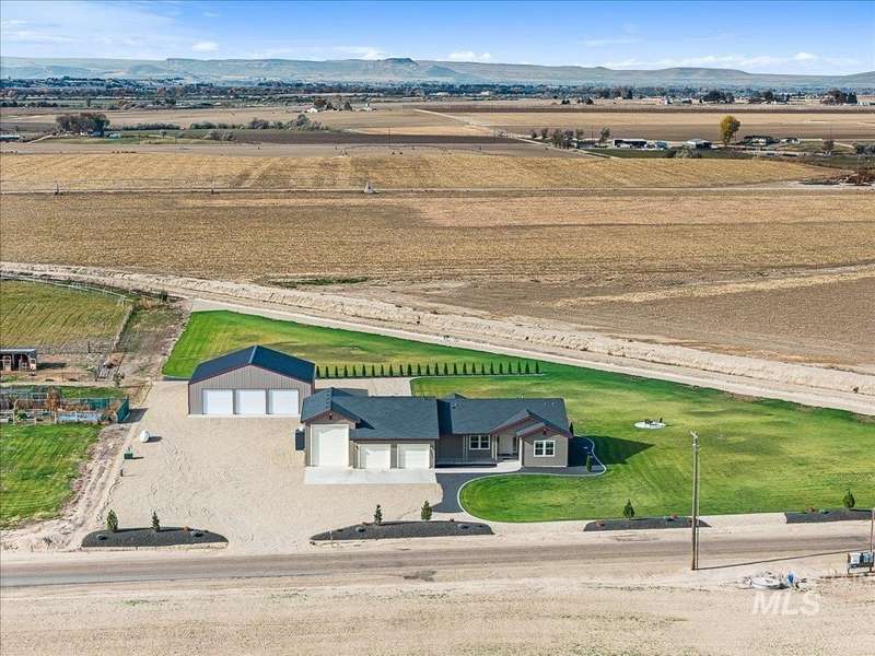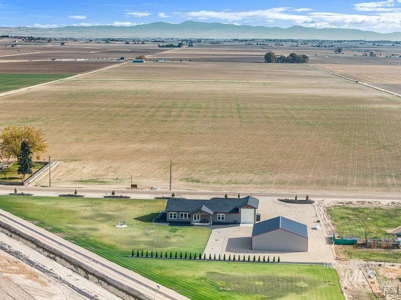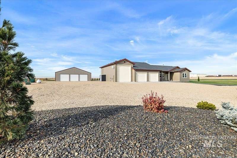 Embrace the true country lifestyle with breathtaking mountain views and the freedom of no HOA or CC&Rs! This beautiful property offers 2.22 irrigable acres complete with a private well and septic system, providing the perfect balance of comfort, independence, and wide-open space for your animals, vehicles, or RV. A highlight of the property is the 48x48 insulated shop, fully powered and wired for 110/220. It features an enclosed 12x48 wood shop with a barn door and two convenient man doors leading to the backyard — a dream setup for hobbyists or anyone needing serious workspace. The fully finished two-car garage includes 8' tall doors, while the RV bay offers 14' doors and a drive-through design to the backyard — making it easy to store and access all your vehicles and equipment. Inside, this meticulously maintained split bedroom floorplan is filled with natural light, 10' ceilings, office w/ barn door, and ceiling fans in every room. The primary suite features a walk-in closet, linen closet, dual vanities, walk-in shower with bench and niche. The junior ensuite adds flexibility for guests or family which includes a walk-in shower and dual closet. The laundry/mud room is designed for convenience with a utility sink, cabinets, built-in ironing board, storage closet, and a half bath. The spacious kitchen offers under-cabinet lighting, granite, island, pantry, and instant hot water.