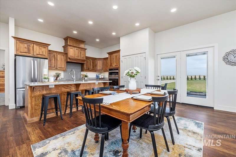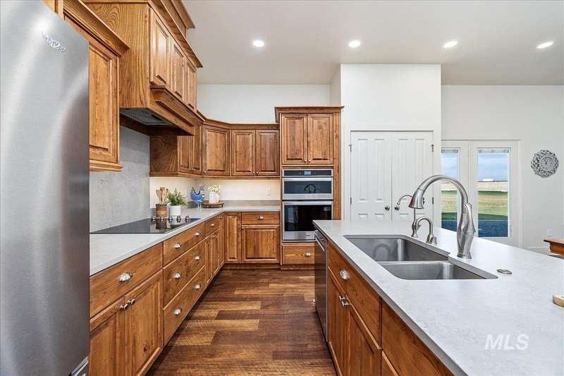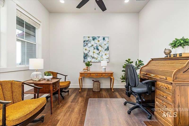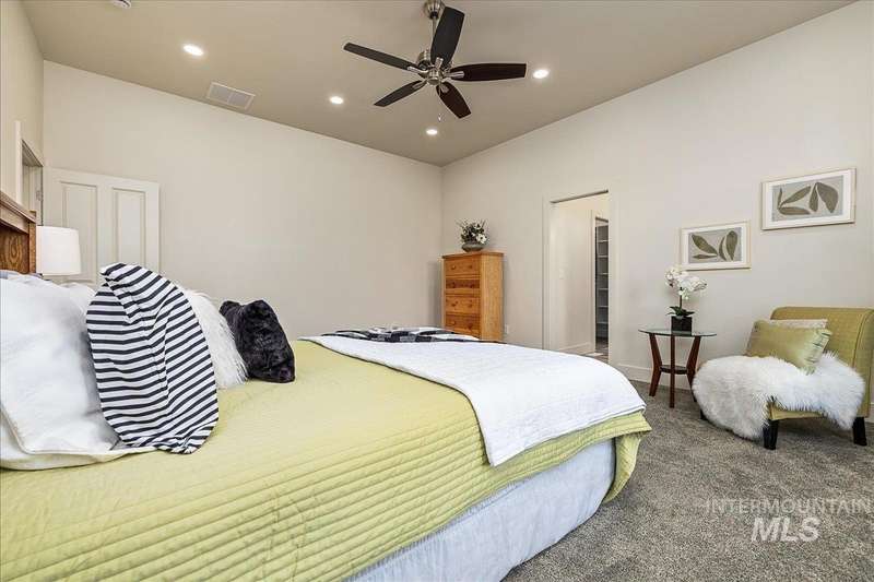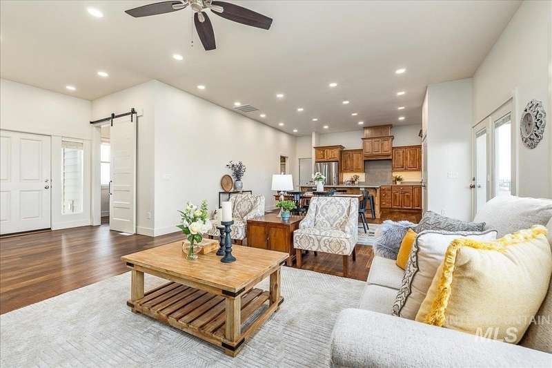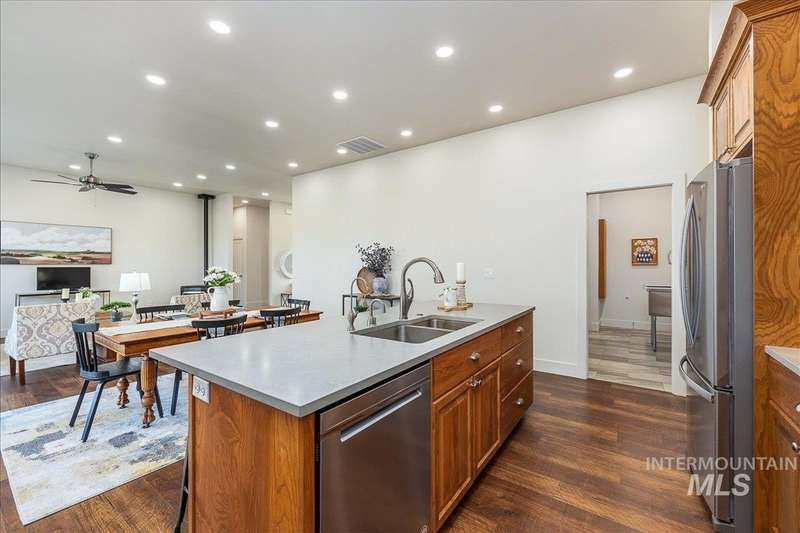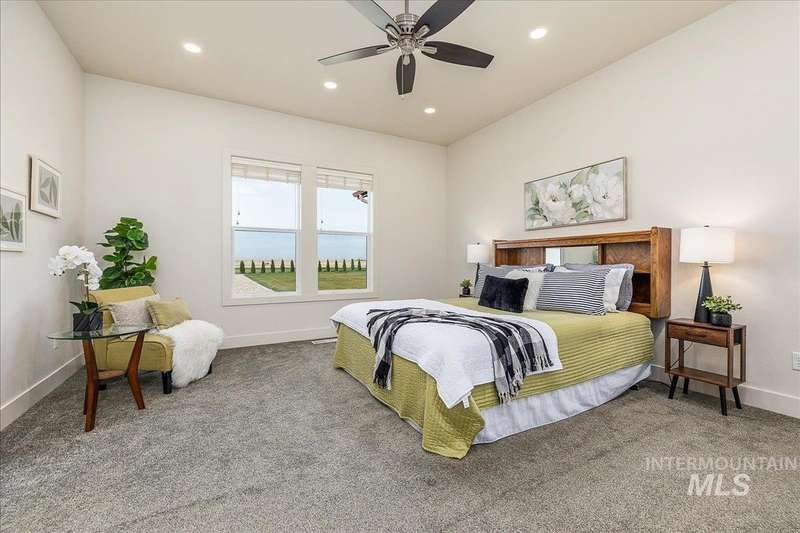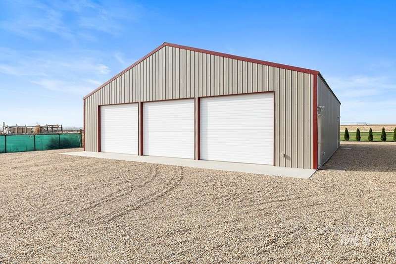 Embrace the true country lifestyle with breathtaking mountain views and the freedom of no HOA or CC&Rs! This beautiful property offers 2.22 irrigable acres complete with a private well and septic system, providing the perfect balance of comfort, independence, and wide-open space for your animals, vehicles, or RV. A highlight of the property is the 48x48 insulated shop, fully powered and wired for 110/220. It features an enclosed 12x48 wood shop with a barn door and two convenient man doors leading to the backyard — a dream setup for hobbyists or anyone needing serious workspace. The fully finished two-car garage includes 8' tall doors, while the RV bay offers 14' doors and a drive-through design to the backyard — making it easy to store and access all your vehicles and equipment. Inside, this meticulously maintained split bedroom floorplan is filled with natural light, 10' ceilings, office w/ barn door, and ceiling fans in every room. The primary suite features a walk-in closet, linen closet, dual vanities, walk-in shower with bench and niche. The junior ensuite adds flexibility for guests or family which includes a walk-in shower and dual closet. The laundry/mud room is designed for convenience with a utility sink, cabinets, built-in ironing board, storage closet, and a half bath. The spacious kitchen offers under-cabinet lighting, granite, island, pantry, and instant hot water.
