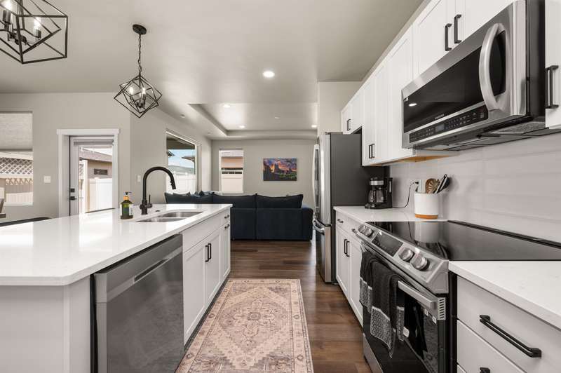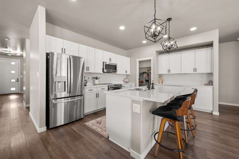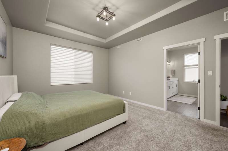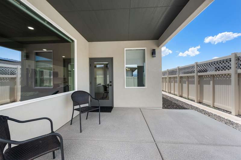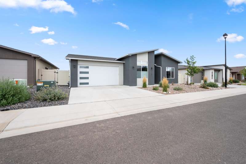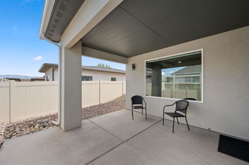 Modern 4-bedroom, 3-bath home in Orchard Mesa with 1,920 sq ft of bright, open living space. Just one year old, this energy-efficient home features high ceilings throughout, abundant natural light, remote controlled window blinds, and a sleek contemporary design. The primary suite includes a spacious bathroom and large walk-in closet, while the kitchen offers a large walk-in pantry. Kitchen is open to living & dining room, and the bedrooms have a split design. Living room and dining room furniture can be included as well. Enjoy the covered patio, two-car attached garage, and low-maintenance yard. HOA covers fiberoptic internet and yard care for front yard, making everyday living easy. A stylish, move-in-ready home in a convenient and desirable location. Schedule your showing today!