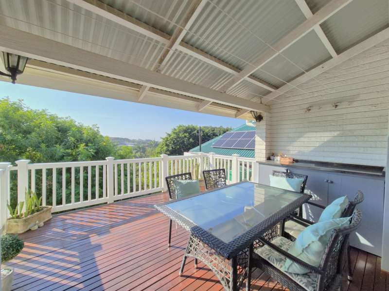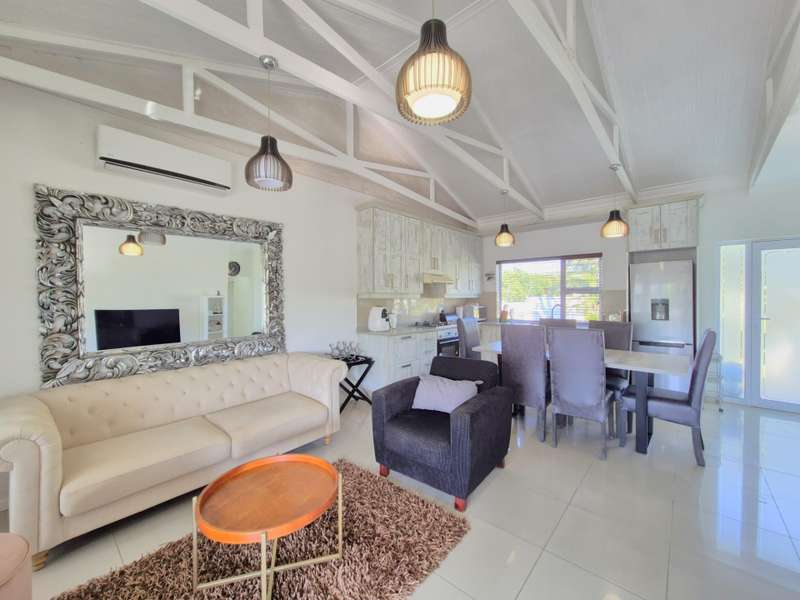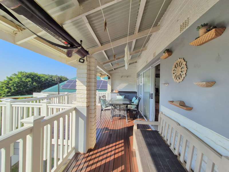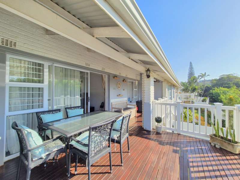 *Check out the video* Join me on an viewing of this exquisite top floor apartment, which is fully remodeled with sleek and modern finishes throughout. You and your small pets are welcomed into an open plan and airy living space with exposed white roof trusses, gracefully flowing out on to a large balcony which is perfect for those morning yoga and coffee sessions and entertaining your guests on games night. The kitchen is fully fitted with ample cupboard space and a 4 plate gas stove, oven and extractor. The main bedroom is very bright and spacious with a portion which can can be used as dressing room or a reading space overlooking the gardens. Both the bathrooms are fully fitted with modern finishes, and each fitted with a shower. The entire complex is very well maintained with beautifully landscaped communal gardens, shaded parking spaces and back up water tanks. For peace of mind this flat has an alarm system, the entire complex is monitored by Maser security, it has a perimeter fence with an electric fence at the top. This is an excellent location in Shelly Beach with just minutes away from all local amenities. Get in touch for an exclusive viewing.