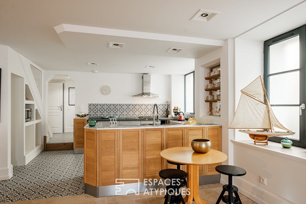 Located in the commune of La Mothe-Saint-Heray, this house is in the heart of a small town full of character. A true medieval city, it is a haven of peace for lovers of calm and tranquility. The house benefits from a quality renovation and offers a surface area of approximately 147 m2. The entrance opens onto a vast living room of 46 m2 bathed in light, where a kitchen blends harmoniously, bringing charm and elegance in a chic country style. The travertine mixed with cement tiles brings a warm atmosphere to this place.