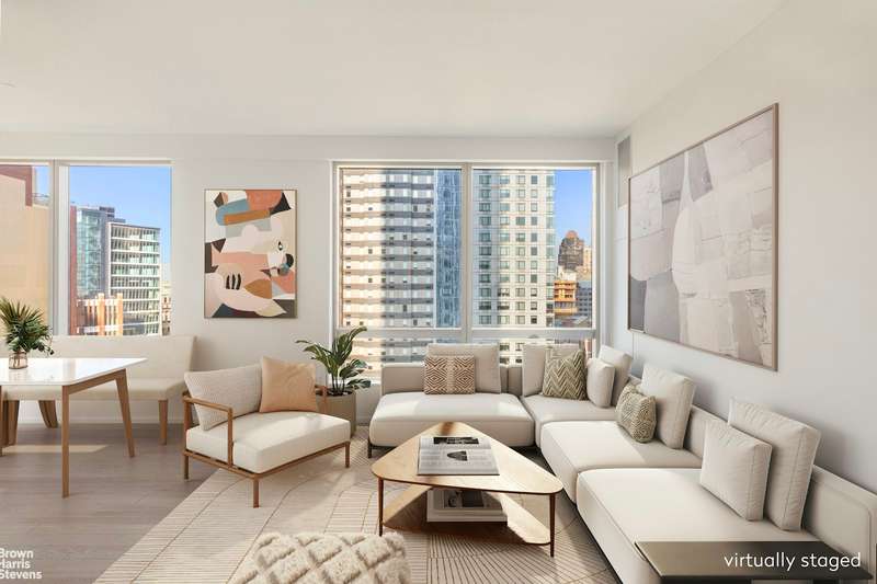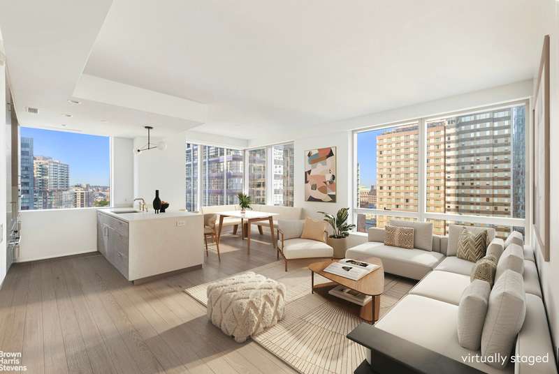 Welcome to a luxurious 18th floor residence spanning 1159 sq ft, with a coveted southwestern exposure, bathing the space in abundant natural light. This sophisticated apartment is perfect for anyone seeking an elevated living experience in a prime location.