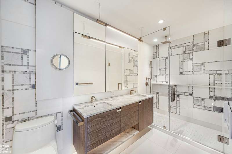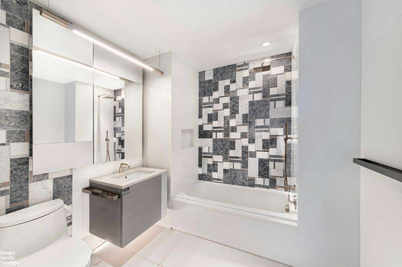 Building services and amenities are exceptional, including a 24-hour attended lobby, concierge, doorman, dry cleaning valet, stroller valet, package room, cold storage, pet spa, bicycle storage, and storage bins. Residents can enjoy the Park Lounge & Bar with a landscaped terrace, firepit, and grills, a putting green, a children's indoor playroom and outdoor playground, a screening and performance room, a chef's kitchen, a wine library, a private study, and a game room. The fitness center features a Pilates studio, rock climbing, cycling studio, and yoga studio. Additional wellness amenities include an indoor swimming pool, steam room, infrared sauna, hot tub, and a squash/basketball court. The building also boasts a stunning rooftop infinity pool.