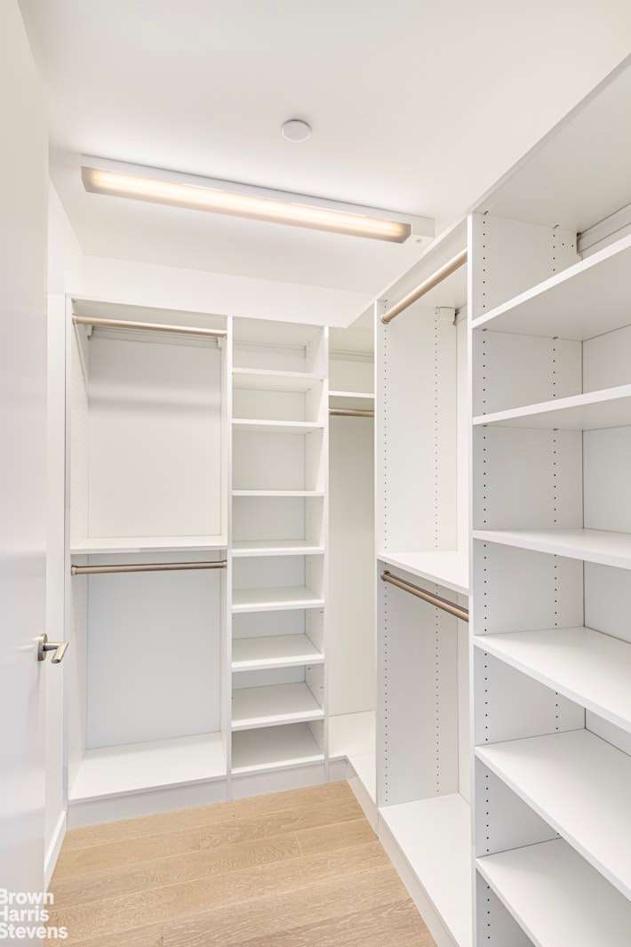 The master bedroom offers a serene retreat with a spacious walk-in closet and an immaculate en-suite bathroom. This spa-like bathroom is appointed with a custom floating oak vanity, imported stone surfaces, custom Waterworks fixtures, a walk-in rain shower, and radiant heated floors. The second bedroom provides ample closet space and easy access to the second full bathroom, which includes a bathtub.