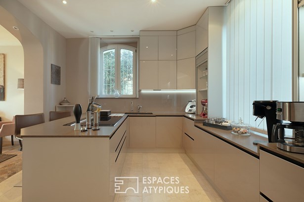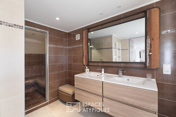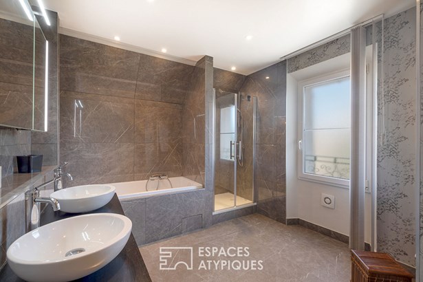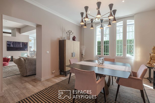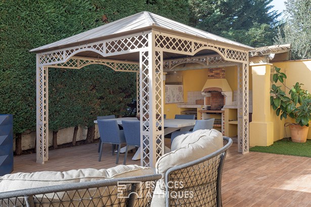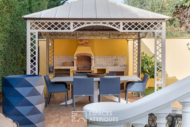 The garden, a true haven of peace, is designed for absolute relaxation. Sheltered from the hustle and bustle of the city, it houses a jacuzzi as well as a covered summer lounge with barbecue, ideal for sharing moments outdoors.