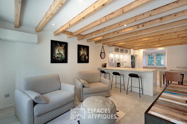 On the garden level, a beautiful independent apartment of 60 sqm consists of a living room with a fitted American kitchen, a bedroom, a shower room with hammam which provides additional comfort for entertaining friends and family.