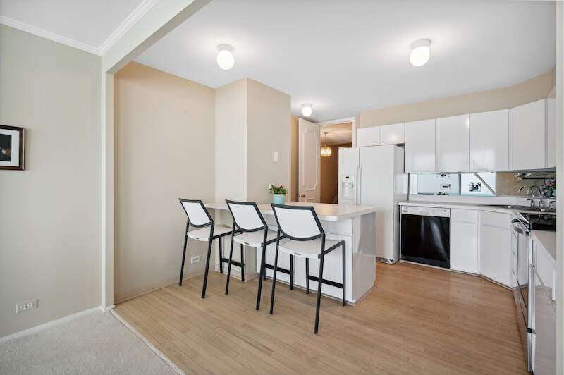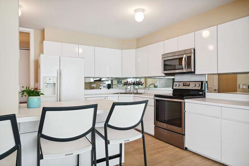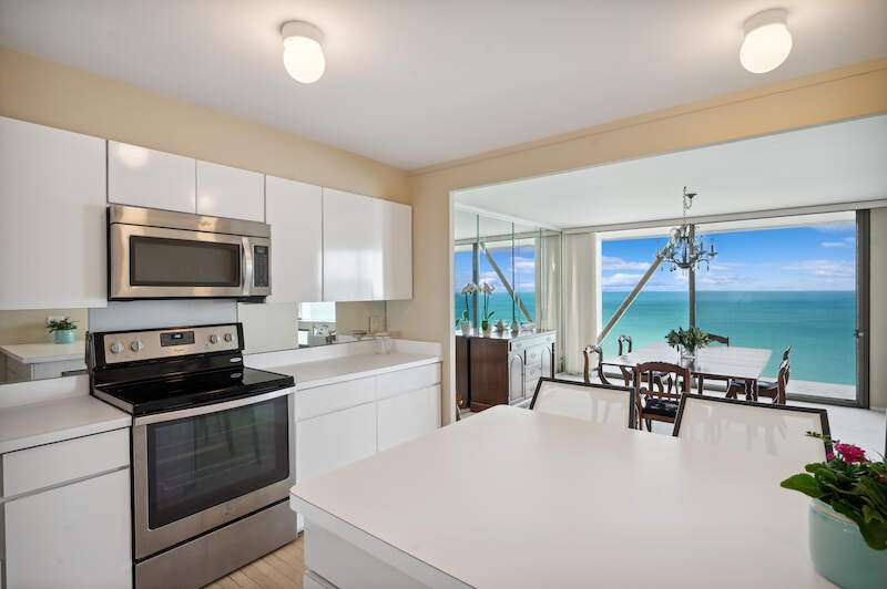 Just Renovated, TURNKEY Lakefront Living! Experience luxury at its finest in this stunningly reimagined home, fully gut-renovated with designer details and high-end finishes throughout. From the moment you enter, the open floor plan and breathtaking lake views will impress. The show-stopping kitchen boasts custom cabinetry, quartz countertops, premium appliances, and dual islands-one with a butcher block prep station and another with seating for casual dining. The spacious living room features a newly built-in Napoleon fireplace, while the separate dining area is enhanced by chic new lighting and sconces. Versatile floorplan with the 3rd bedroom on the main living level with french doors - can be used as a bedroom, office or a den! Powder room with limestone vanity on this floor as well. Step outside to the patio to enjoy morning coffee, the sunrises and refreshing lake breezes. The serene primary suite offers an abundance of closet space and a spa-caliber bath with a custom double vanity in white oak, designer tile, and a rare window for natural light. The second bedroom includes its own newly renovated ensuite bath. In-unit laundry room provides added convenience. One *interior parking space. This full amenity building offers 24/7 Doorman, on-site management, outdoor pool by the lake, exercise room, renovated party room with a kitchen that opens to the pool area, indoor parking. Located across from the newly renovated Plaza Del Lago shopping with high-end boutiques, restaurants, and coffee shops. Langdon Park is just down the block. A carefree beach lifestyle awaits you. NOTHING TO DO HERE BUT MOVE RIGHT INTO THIS GORGEOUS LAKEFRONT HOME! Buyer pays Wilmette transfer tax. Monthly Assessment $1,987.72.