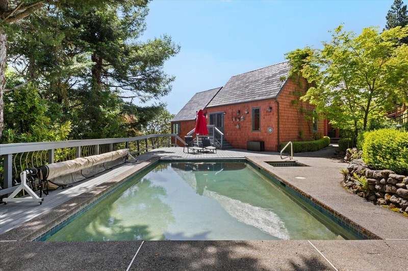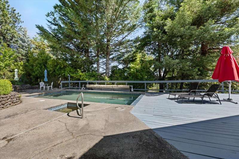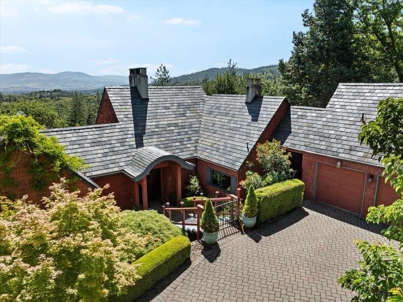 Motivated Sellers! Spectacular home in the Historic town of Jacksonville! Gorgeous views, amazing curb appeal, large inground pool, & so much more! Recently remodeled kitchen w/tons of custom built in cabinets, wolf range & stainless appliances, perfect for those who love to cook! Spacious dining room w/fireplace. Addt'l living area on main level. Living room has a ton of windows to maximize the views. Large primary bedroom w/sitting area, fireplace, walk-in closet & tons of built-ins. Primary bathroom has heated floors, curbless shower & dual vanity. 3 guest bedrooms leave room for everyone. Guest bathroom has exterior entrance for easy access from the pool. Meticulously maintained landscaping, w/meandering trails throughout the beautiful gardens. Slate roof adds to the charm of the home. Spacious deck to enjoy lounging by the pool or enjoying the views of surrounding mountains. This home was made for entertaining! 3% assumable VA loan, contact agent for details.