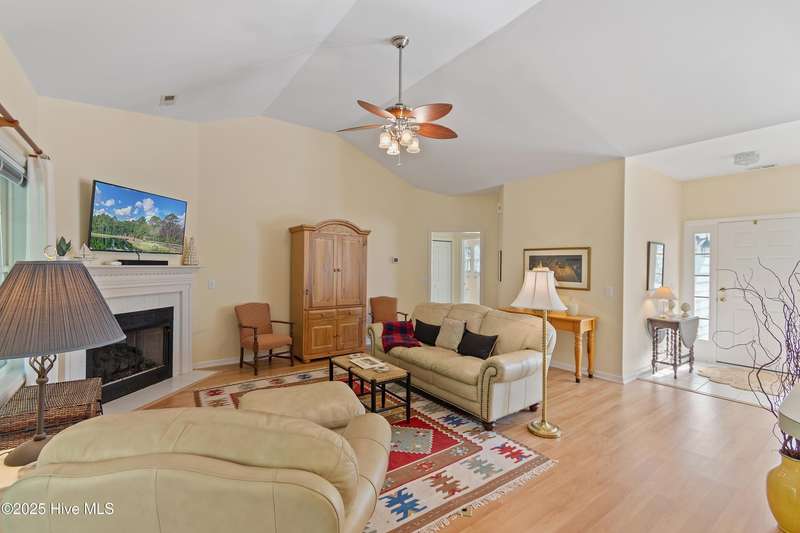 Why would you buy a condo when you can have a Single Family Home, the cherry on the top, NO HOA Dues and you have a garage and a yard for your furry friends!! If you've been dreaming of the St. James lifestyle, this charming cottage in the sought-after Georgetown neighborhood is the perfect place to call home. Known for its welcoming, friendly neighbors, Georgetown offers a true sense of community. Tucked away on a private semi-circle street, this one-level home blends comfort and style. The welcoming foyer opens to a spacious great room with vaulted ceiling and cozy corner fireplace, flowing seamlessly into the dining area and a stylish kitchen with crisp white cabinetry and abundant storage. Enjoy the natural light and peaceful setting from the conditioned sunroom overlooking a fenced yard and serene pond—perfect for morning coffee or an evening glass of wine. The owners suite is generously sized, featuring a large walk-in closet and a spa-like bath with separate shower and soaking tub. An additional bedroom offers flexibility as a guest room, home office, or hobby space. Recent updates include a new HVAC system, tankless water heater, solar shades in the sunroom, and fresh exterior paint. Living in St. James means enjoying resort-style amenities every day: 81 holes of championship golf, tennis, pickleball, over 35 miles of walking and biking trails, indoor and outdoor pools, fitness centers, a full-service marina with 475 wet and dry slips, and even a private oceanfront beach club. Don't wait—start living the St. James lifestyle today!