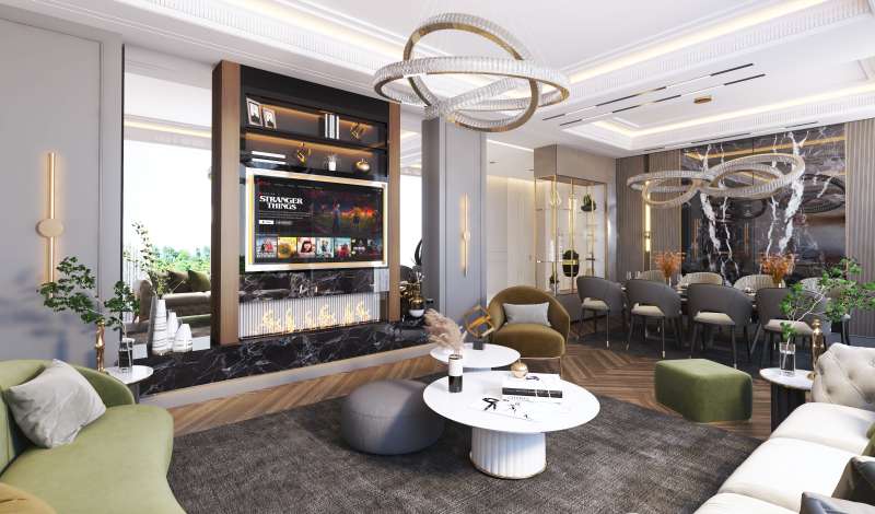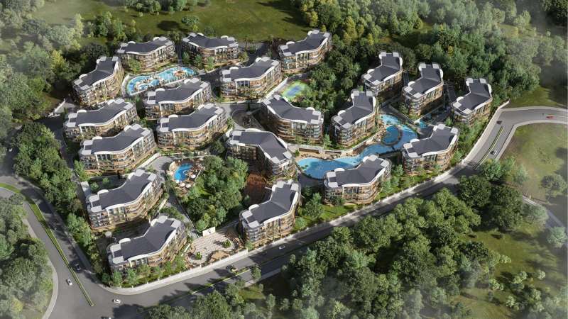 The complex, built on 65.000 sqm of land, consists of 20 blocks and 660 apartments. The complex has a tennis court, communal garden, SPA, fitness center, pilates area, open-air cinema, showground, yoga area, social club, site attendant, Turkish bath, sauna, basketball and volleyball fields, kids’ playgrounds, gazebos, three swimming pools, indoor and outdoor car parking areas, cafe and restaurants, and lifts.