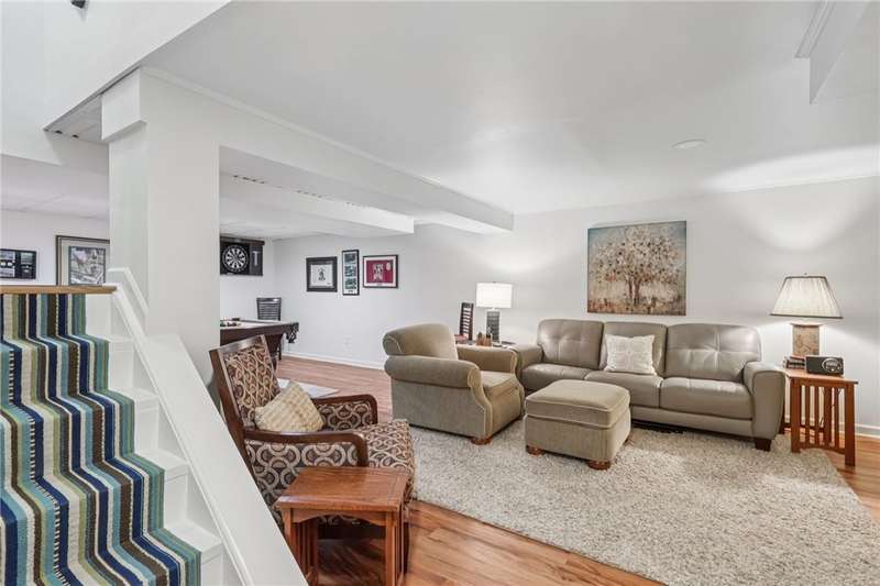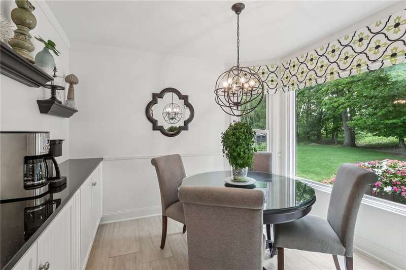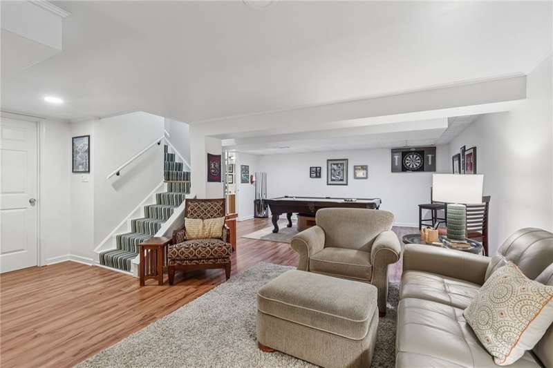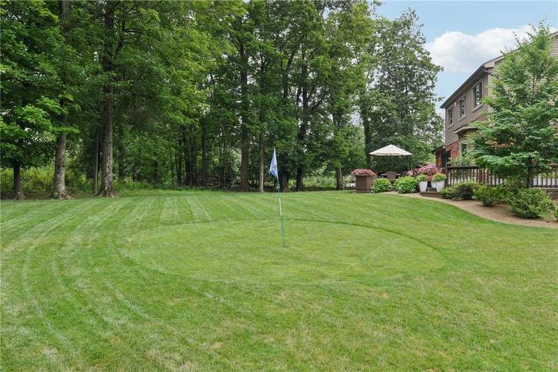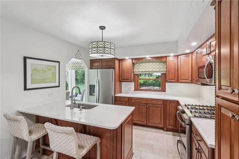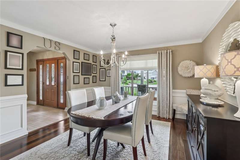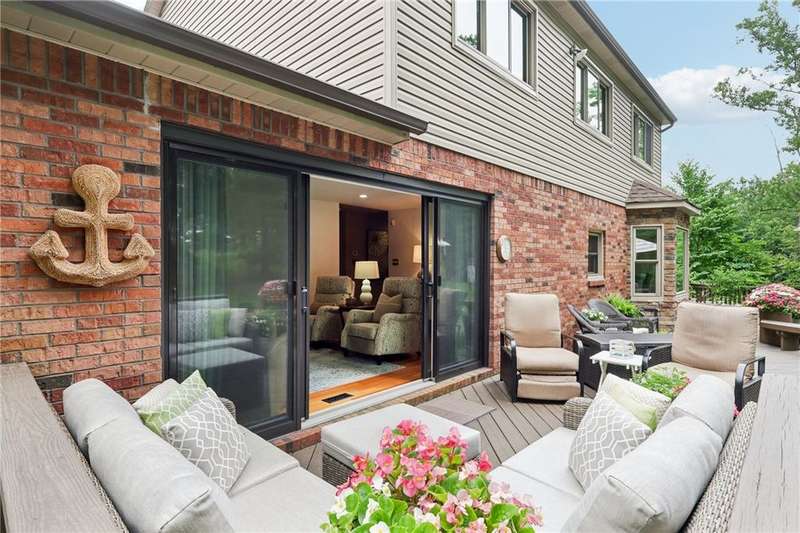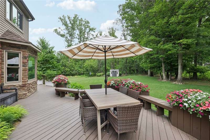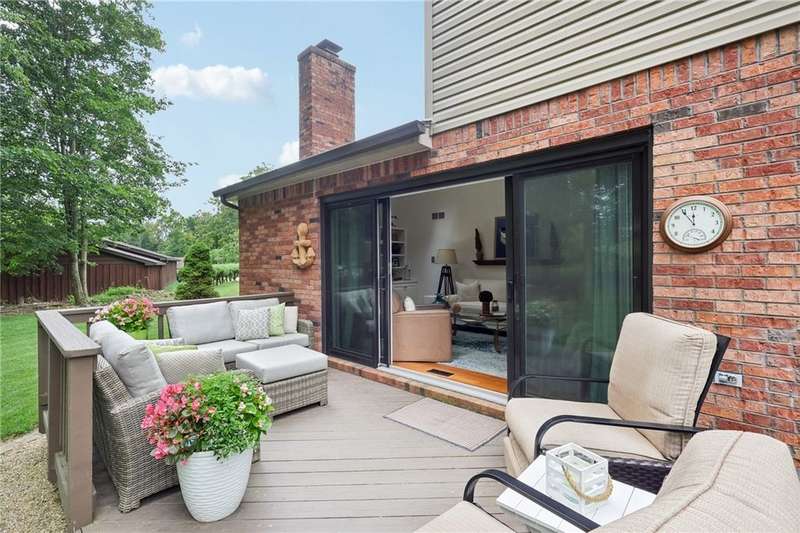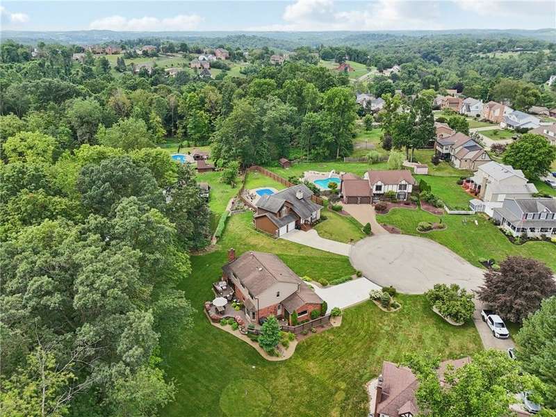 Absolutely stunning & impeccably 4-bedroom home on cul-de-sac in Penn Township! Move-in ready gem w/gleaming hardwood floors & thoughtful updates throughout. Spacious covered front porch w/seating leads to welcoming foyer w/leaded glass front door, guest closet, & plank tile flooring. Formal living w/crown molding. Dining room w/elegant crown molding & classic wainscoting. Chef's dream kitchen w/stainless steel appliances, quartz countertops, white subway tile backsplash, island w/seating, recessed lighting, & charming breakfast nook w/coffee bar & bay window & granite counter. 1st floor laundry w/convenient access to rear patio. Family room w/vaulted ceiling & skylight, brick fireplace flanked by built-ins, & sliding glass doors that open to an expansive rear deck w/seating, dining & built-in flower beds. Beautifully landscaped level backyard w/putting green, shed, & plenty of space to relax or play. Lower level game room w/half bath & massive versatile room.