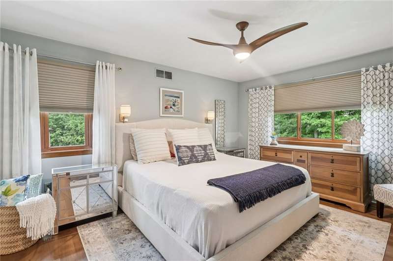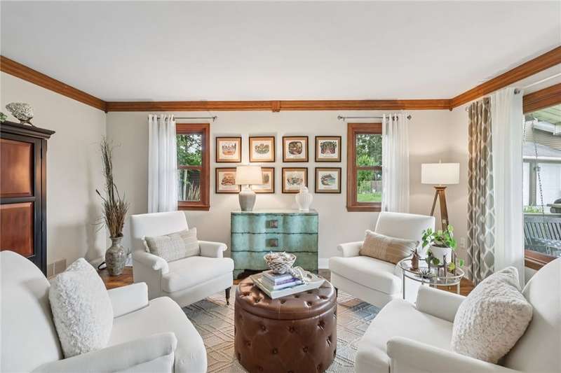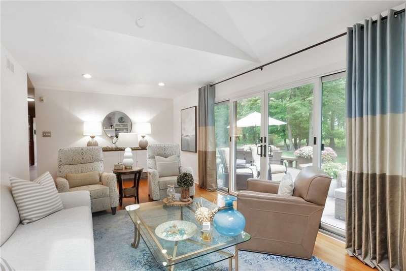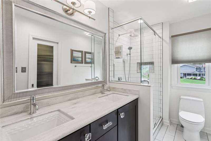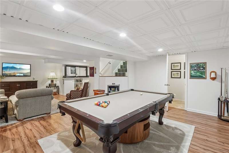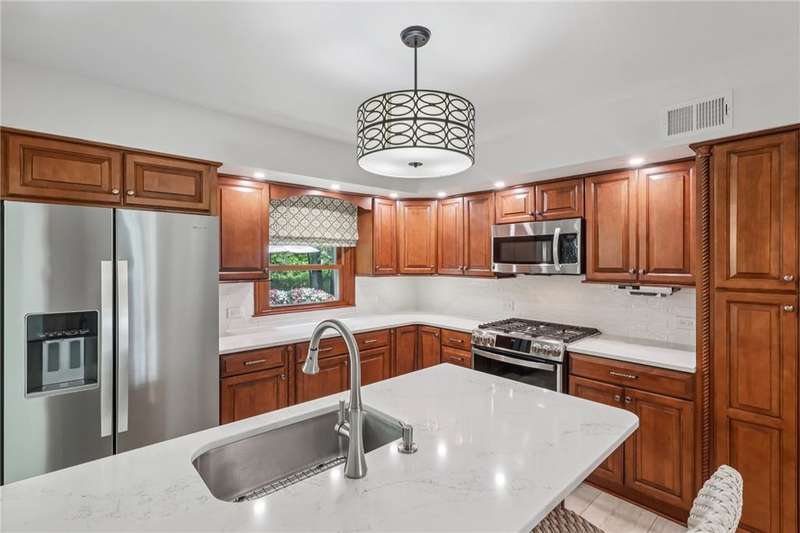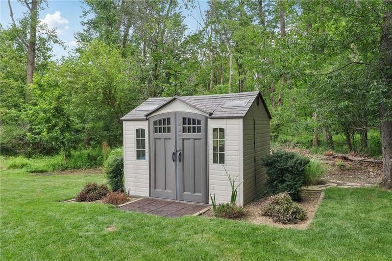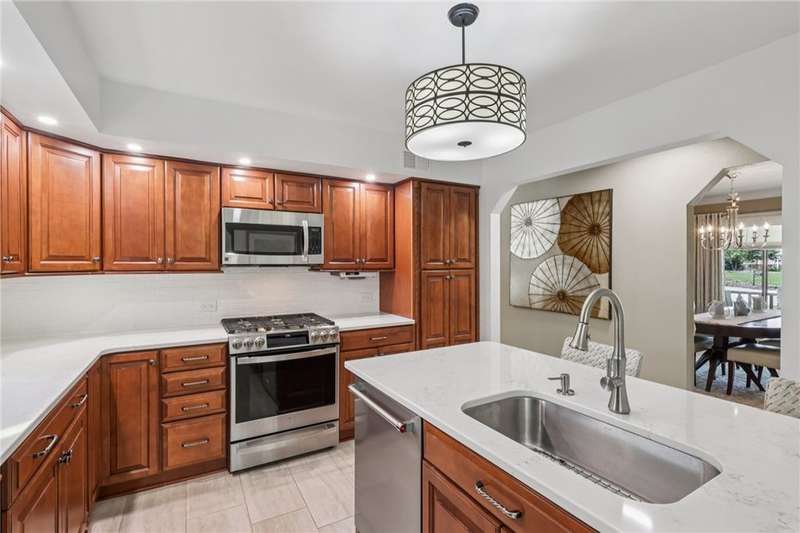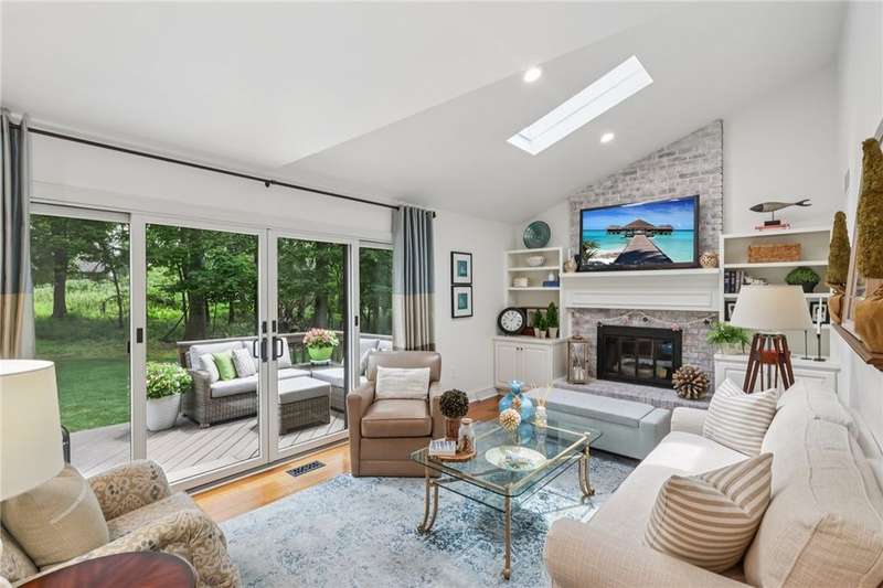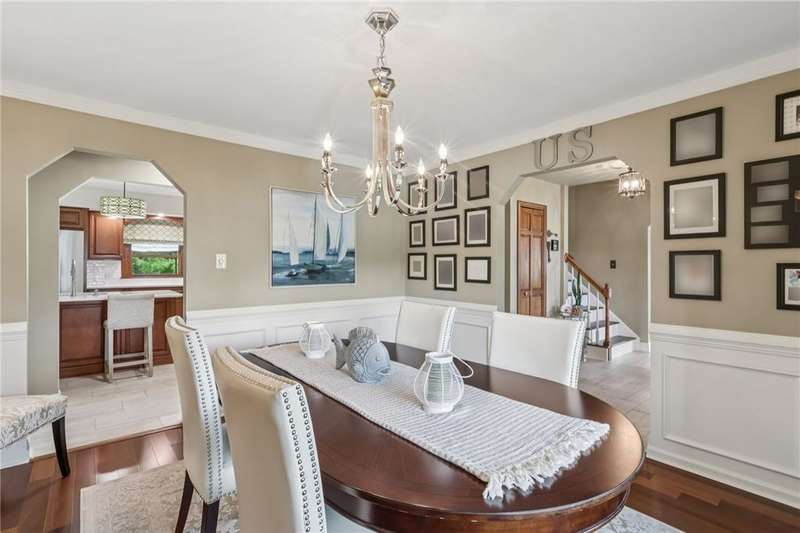 Absolutely stunning & impeccably 4-bedroom home on cul-de-sac in Penn Township! Move-in ready gem w/gleaming hardwood floors & thoughtful updates throughout. Spacious covered front porch w/seating leads to welcoming foyer w/leaded glass front door, guest closet, & plank tile flooring. Formal living w/crown molding. Dining room w/elegant crown molding & classic wainscoting. Chef's dream kitchen w/stainless steel appliances, quartz countertops, white subway tile backsplash, island w/seating, recessed lighting, & charming breakfast nook w/coffee bar & bay window & granite counter. 1st floor laundry w/convenient access to rear patio. Family room w/vaulted ceiling & skylight, brick fireplace flanked by built-ins, & sliding glass doors that open to an expansive rear deck w/seating, dining & built-in flower beds. Beautifully landscaped level backyard w/putting green, shed, & plenty of space to relax or play. Lower level game room w/half bath & massive versatile room.