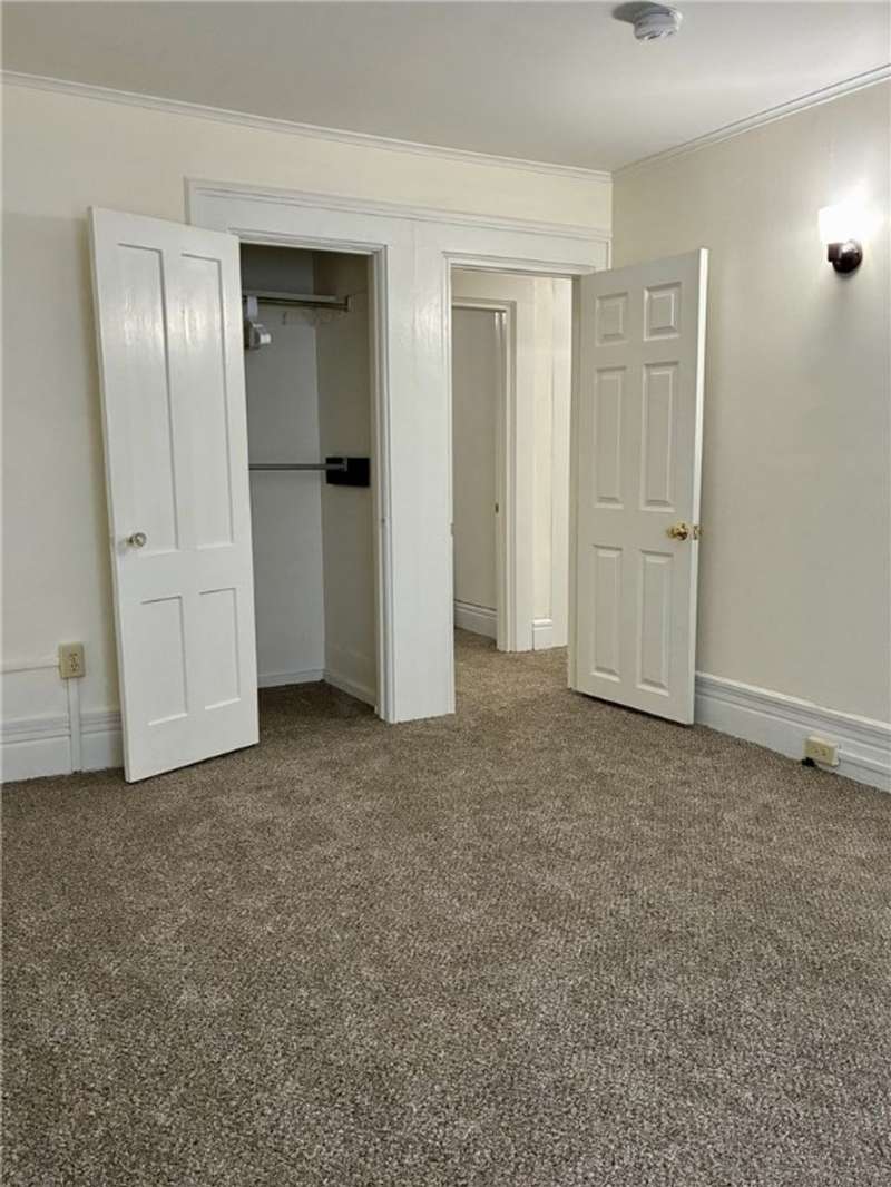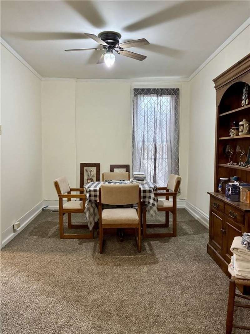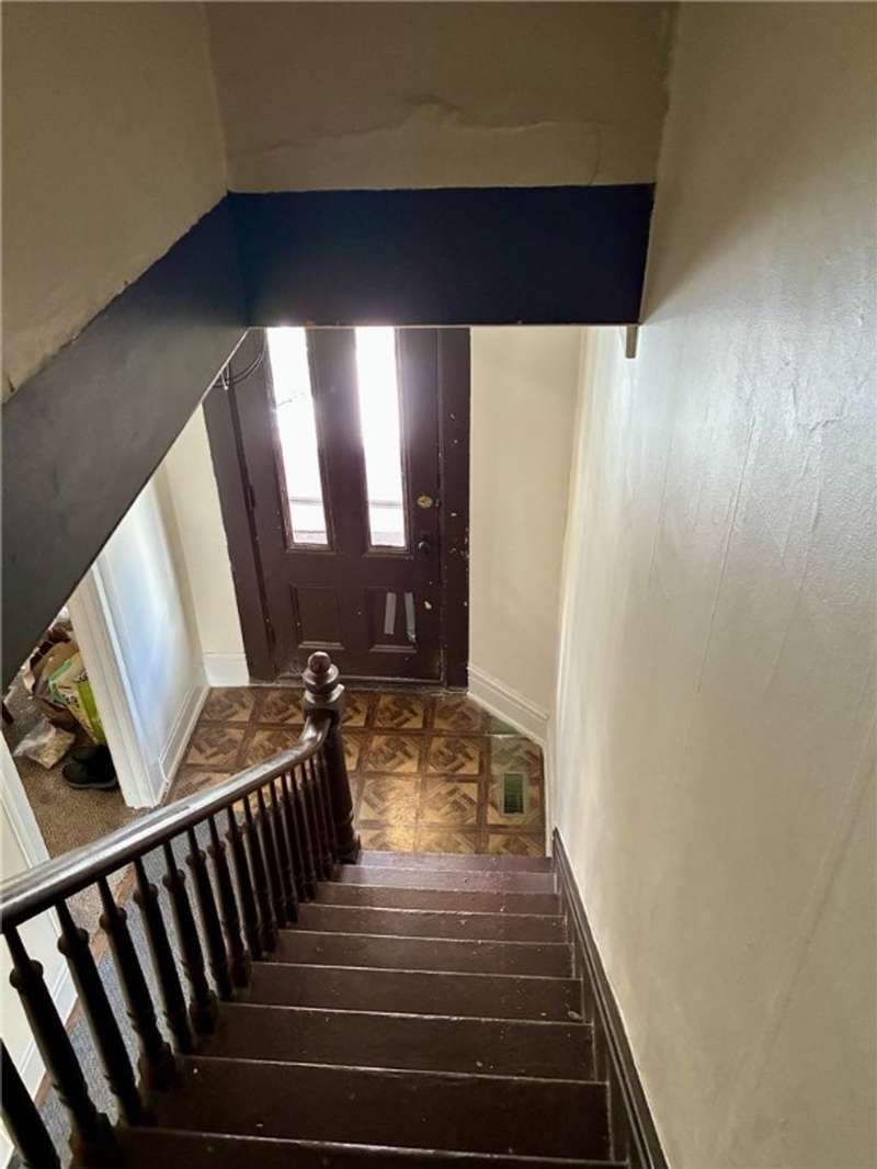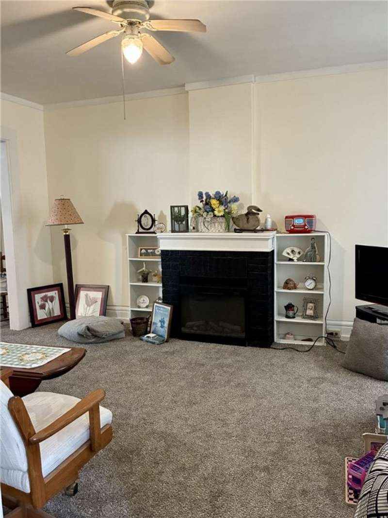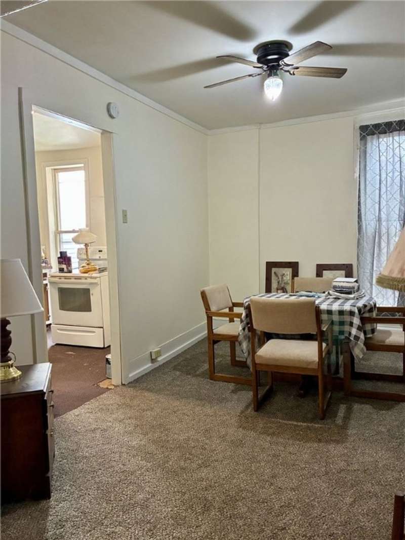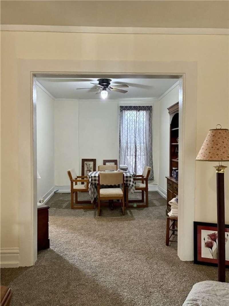 This affordable 3 bedroom row house is a must see and just steps from downtown amenities! A nice sitting porch welcomes you into the main floor. This home has a spacious living room with an electric fireplace for cozy nights. This room is open to the dining room which leads to the kitchen with a large built-in cupboard, and includes a refrigerator and stove. Off the kitchen is the laundry room which is quite big and has built-ins for pantry storage and can certainly be multifunctional as a mudroom. The quarter bathroom is conveniently tucked away in the laundry room. The second floor has three very nice sized bedrooms and the full bathroom. The house is partially furnished and being sold "As Is" with the contents. It needs some love and your personal touch. The carpeting throughout is brand new! The high efficiency furnace & hot water tank are only 5 yrs old. There is a public park steps from this street and two parking areas so no more worries about parking. Welcome home!