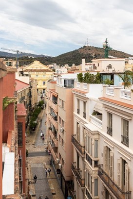 Spacious exterior apartment in the historic centre of Malaga, on the fourth floor with a south orientation.The apartment is located in the heart of the historic centre of Malaga, on the fourth floor with a south orientation, just between Plaza Uncibay and Plaza de La Merced. The building dates back to 1945, and its facade is protected as it is located in the heart of the historic centre of Málaga, which is declared a Cultural Heritage Site.With a total built area of 125 m2 and 99 m2 living area, the apartment features 1 exterior bedroom, 2 bathrooms, and two large living rooms with an open kitchen. The five original rooms have been converted into more spacious living spaces. The internal restructuring reduced the number of rooms to have a large living room and work area, with a very sunny area facing south. Double glazed climalit windows and with elevator. It has been recently partly renovated with a new floor in the whole apartment, and a redistribution of bedrooms and kitchen,