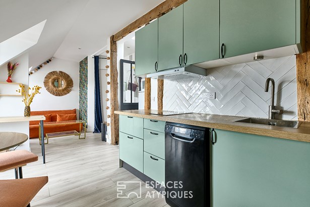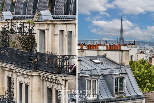 Perfectly located in the heart of Abbesses district and at the foot of Montmartre, this bright 40.85 sqm apartment (31.64 sqm Carrez law) is on the sixth and top floor of a well-maintained building.