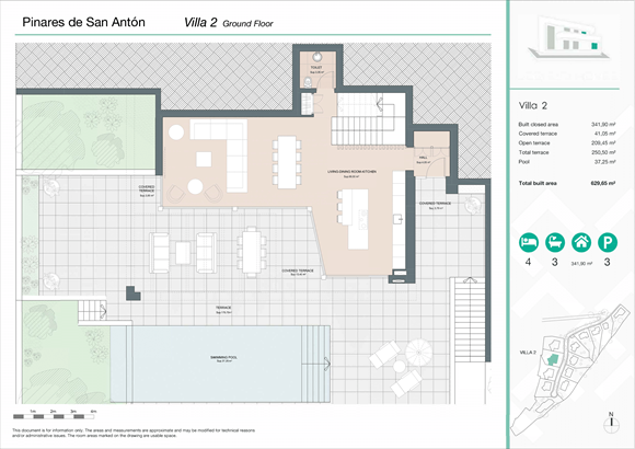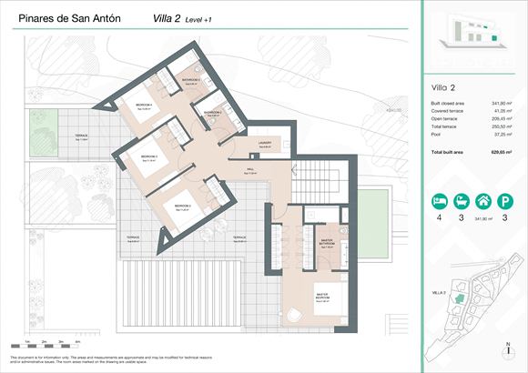 Villa 2 at Pinares Hills, located in the exclusive gated community of Pinares de San Antón, just north of Málaga City Centre, offers a perfect blend of modern architecture and natural beauty. This luxurious home, part of a distinguished development, spans a total built area of 592 m² of which 250 m² are terraces. With floor-to-ceiling glass throughout, the open-plan living spaces are filled with natural light, providing stunning panoramic views. The minimalist kitchen, included in the price, can be customised to suit your personal style and connects effortlessly to an elegant dining area, ideal for both daily living and entertaining.The villa features 4 stylish bedrooms and 3 sleek bathrooms, all designed with comfort and aesthetics in mind. The living room, highlighted by expansive sliding glass doors, opens onto a spacious terrace offering breathtaking views of the surrounding landscape. The outdoor living space is equally impressive, with a private saltwater infinity pool, extensi