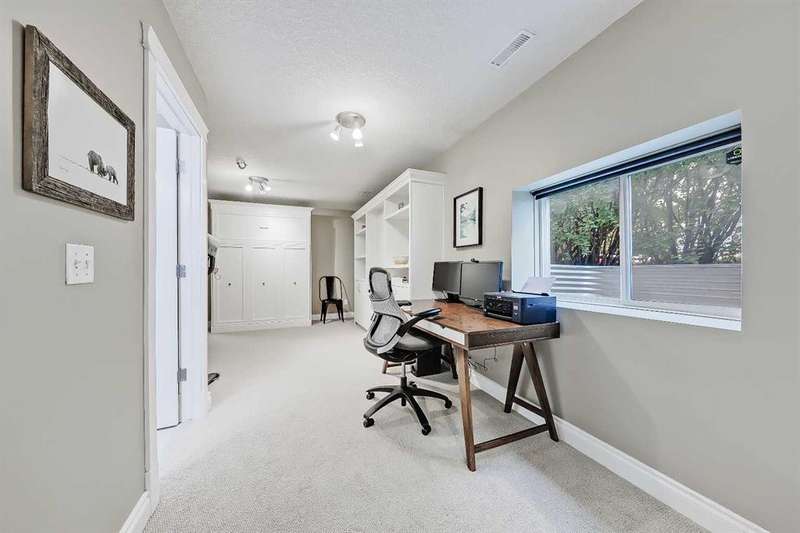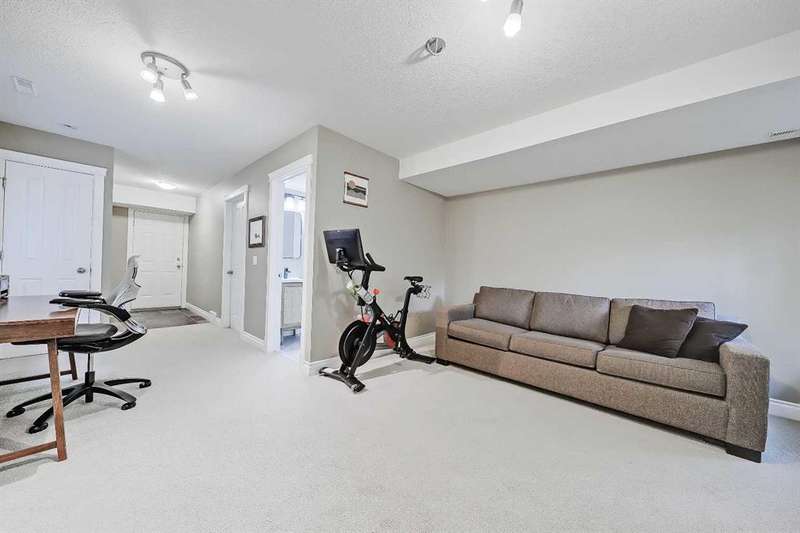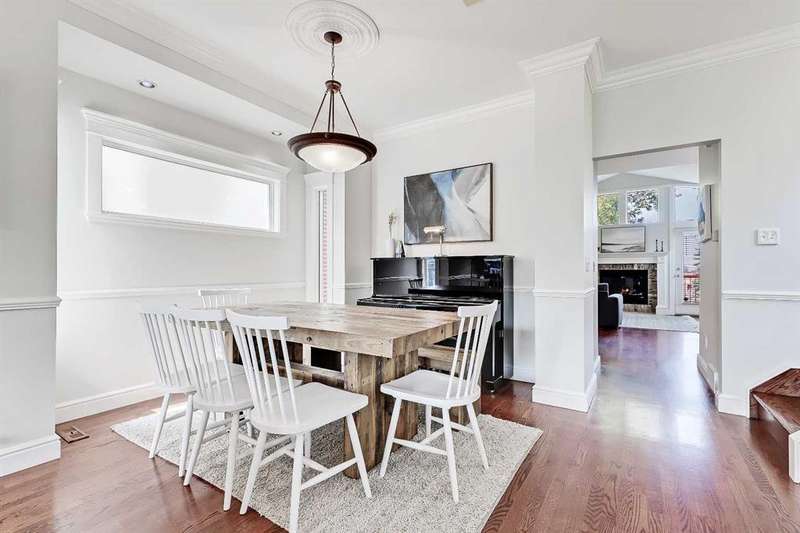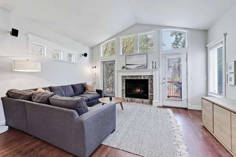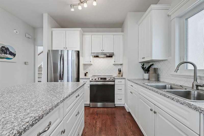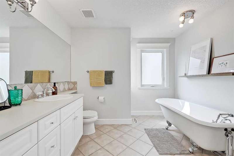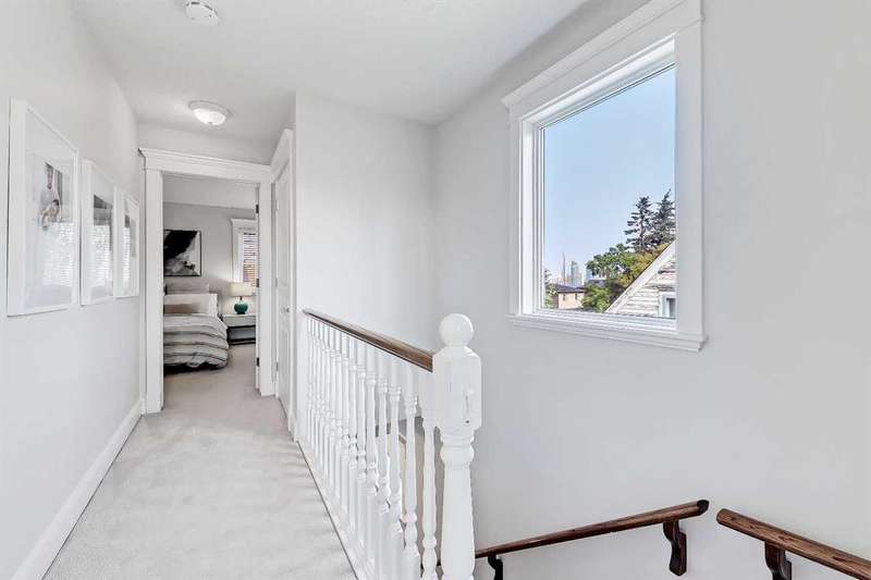 GORGEOUS EXECUTIVE HOME | HUGE PRIVATE YARD & DECK | A/C | GREAT LOCATION CLOSE TO DT & AMENITIES! Welcome to this well maintained and thoughtfully updated executive home, offering just under 2,000 sqft. of versatile living space and a backyard retreat rarely found in the inner city; this property strikes the perfect balance between urban convenience and private sanctuary. Set in a great community, walkable to playgrounds, sports fields, tennis courts, off-leash parks and schools, as well as the South Calgary Outdoor Pool, Giuffre Public Library and the vibrant shops, cafés and restaurants of Marda Loop and 17th Avenue. Step inside to discover an inviting open-concept layout where the living and dining areas flow seamlessly together. Hardwood floors, crown moulding, a cozy fireplace and oversized windows create a warm, sunlit space with plenty of room for hosting family dinners or relaxed evenings. A tucked-away powder room on the landing offers convenience, while the spacious kitchen at the rear of the home impresses with stainless steel appliances, classic white cabinetry, a centre island, tiled backsplash and ample pantry storage. The adjoining family room is a perfect gathering space featuring a second fireplace and a wall of windows overlooking the yard and deck. Upstairs, the primary suite is a true retreat with a vaulted ceiling, large windows that capture a skyline view and a large walk-in closet. The 2nd bedroom also impresses also featuring a vaulted ceiling, a dramatic feature window and a closet spanning the full width of the room. The spacious 5-piece bathroom offers a gorgeous free-standing claw foot tub, a separate fully tiled shower and a huge double sink vanity with loads of storage space. The lower level is as versatile as it is welcoming. It can easily serve as a 3rd bedroom with ensuite or a multi-use space for a home theatre, games room or office. Highlights include a built-in Murphy bed, custom entertainment unit, large windows and a brand new 3-piece bathroom with a sleek tiled shower and glass enclosure. From this level, you’ll also find access to the laundry/furnace room and the oversized single garage with exceptional storage capacity. The backyard is the true star - a rare inner-city retreat surrounded by greenery. The multi-level deck features an upper BBQ area and a sprawling lower-level ideal for entertaining or unwinding with family and friends. A generous lawn area and planter boxes complete the space and create a true outdoor escape that feels worlds away while still being just minutes from downtown. The list of additional features includes new front steps, posts and railing on the bright and sunny front balcony (2023), huge oversized front driveway for additional parking, central A/C, gorgeous oak hardwood, 9’ and vaulted ceilings, built-in and wall-mounted speakers on the main level, blinds package, most windows upgraded to triple pane (2021), newer paint, upgraded carpet on the upper level and more. Welcome Home!