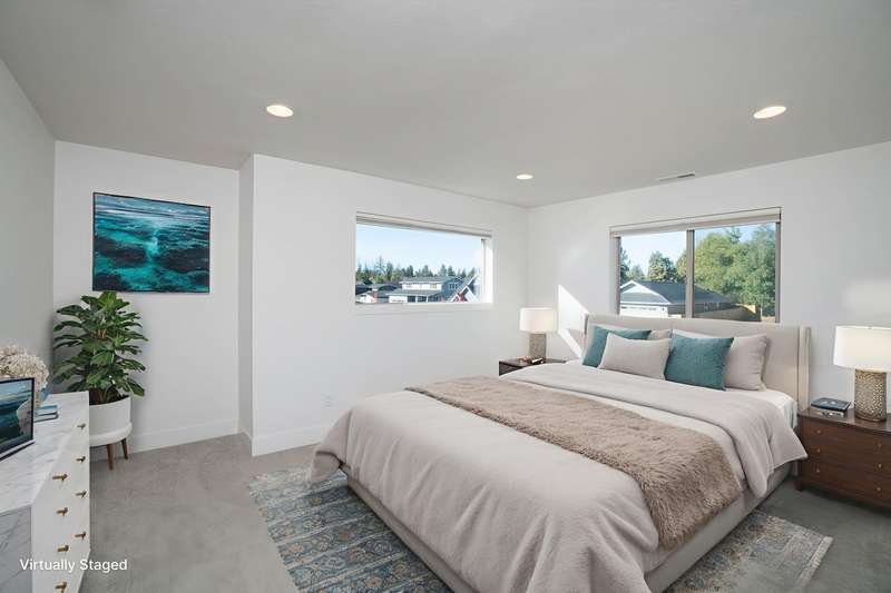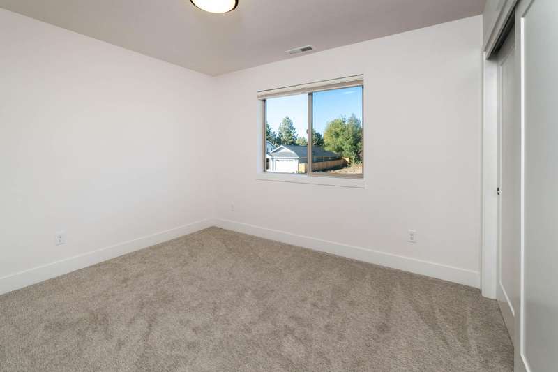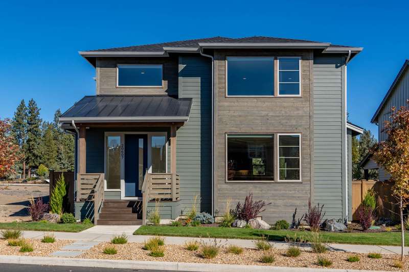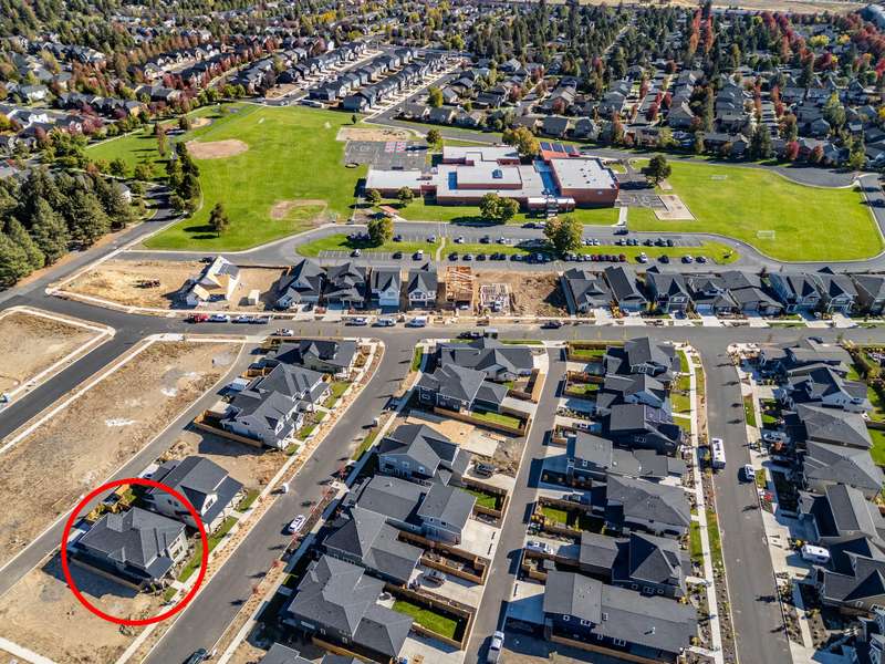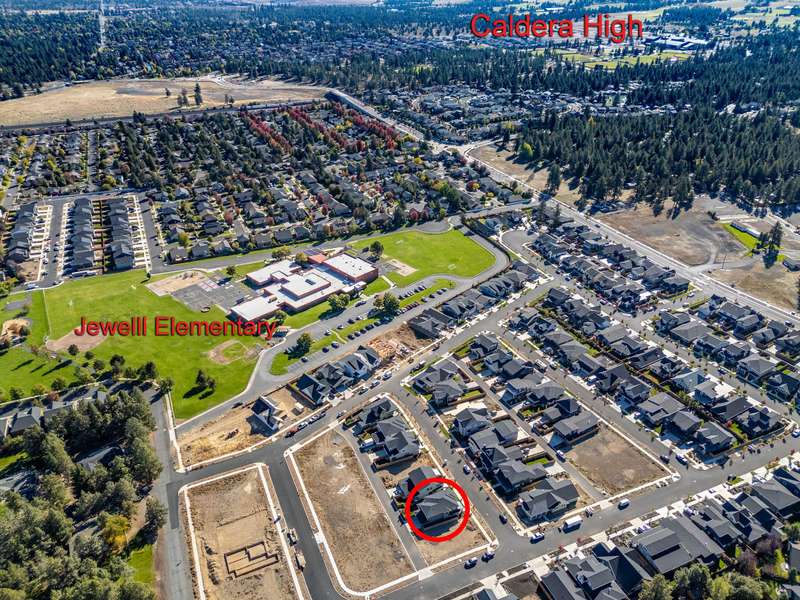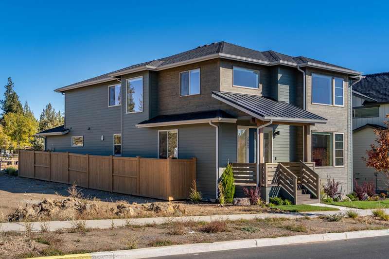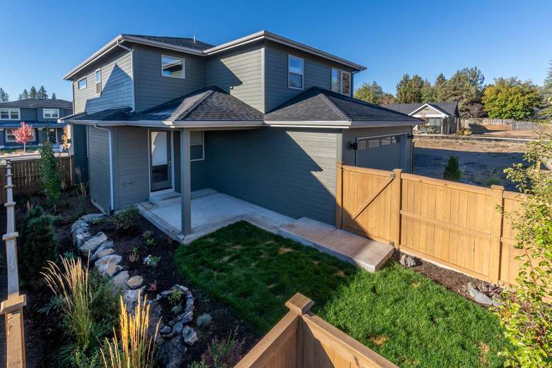 Stunning 5-bedroom home, completed in May 2025, with no HOA dues! Beautifully landscaped with covered front entry deck. This great room floorplan is light and bright, w/large picture windows, automated window blinds & gas fireplace with tile surround & mantle. Gorgeous hardwood floors on main level. Office/5th bedroom has French doors & walk-in closet. Spacious kitchen boasts oversized island with ample storage, quartz counters, full tile backsplash, ss KitchenAid appl. including a steam/bake/convection range double oven. Covered back patio, fenced & landscaped backyard. Large mud room adjacent to 2-car garage with new polyeurea flake flooring. This Earth Advantage home boasts tankless water heater, AC, & gas heating. Expansive primary suite offers big picture windows w/automated blinds. Tall counters, dbl. vanities, tiled floors & shower and walk-in closet. Laundry with sink/cabinets. Quiet setting in Countryside neighborhood, close to schools, Alpenglow Park & Bend Golf Club.