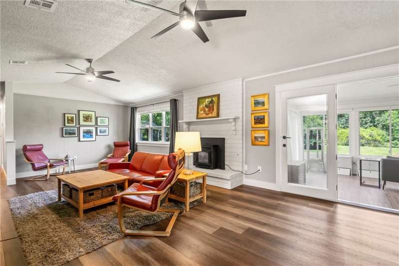 Beautifully updated home offering comfort, style, and functionality! This 3BD 2BA, 2,090SF property sits on a 0.36 acre lot with a 2-car garage & golf cart access. Recent updates include gutters, water heater, LVP flooring & ceramic tile in the kitchen. Kitchen features black SS appliances, butcher block countertops, painted cabinets w/soft-close, new sink & pantry w/pull-out shelving. Additional updates include ceiling fans, light fixtures, switches, plugs, trim, programmable thermostat, door hardware & an energy-efficient windows & front door. Living room features a pellet stove. Sunroom addition is heated/cooled & could be used as home office or flex space. Bathrooms updated w/new vanities, sinks, mirrors, lighting, toilets & clear glass shower doors in the primary bath. Primary closet includes custom shelving system. Exterior freshly painted with added attic insulation. AC was replaced in 2018, Roof was replaced in 2021, HVAC/heat pump was replaced in 2022, please see full list of upgrades in attachments.