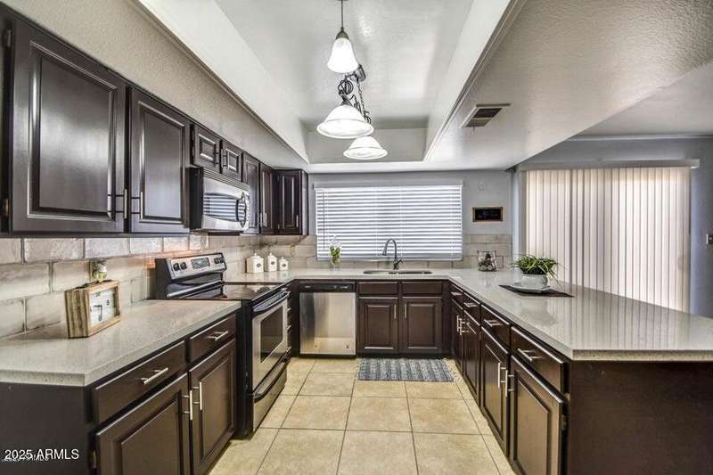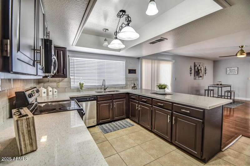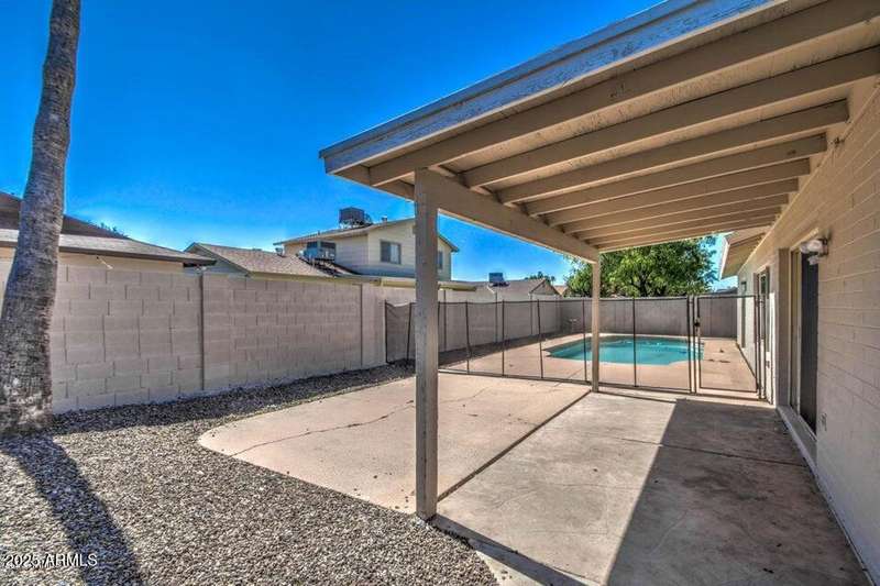 Beautifully remodeled and move-in ready, this spacious home offers tile and wood flooring in main areas, vaulted ceilings, and neutral paint throughout. Enjoy a modern kitchen with stainless steel appliances, Quartz countertops, upgraded cabinets, and a breakfast bar. The layout includes separate living and family rooms, a large primary suite with walk-in closet, and an epoxy-coated garage with shelving. Step outside to a generous backyard with a covered patio and fenced pool. With a tenant in place, it's perfect for investors or future homeowners. Don't miss out!