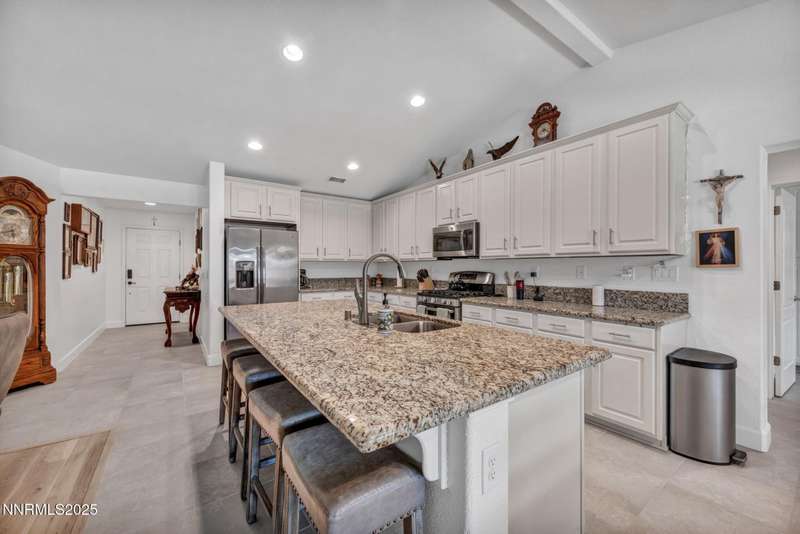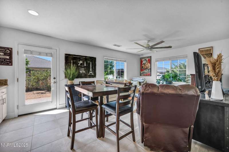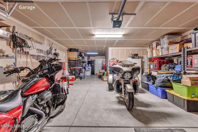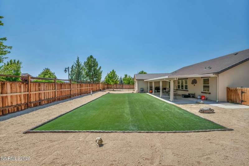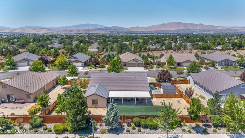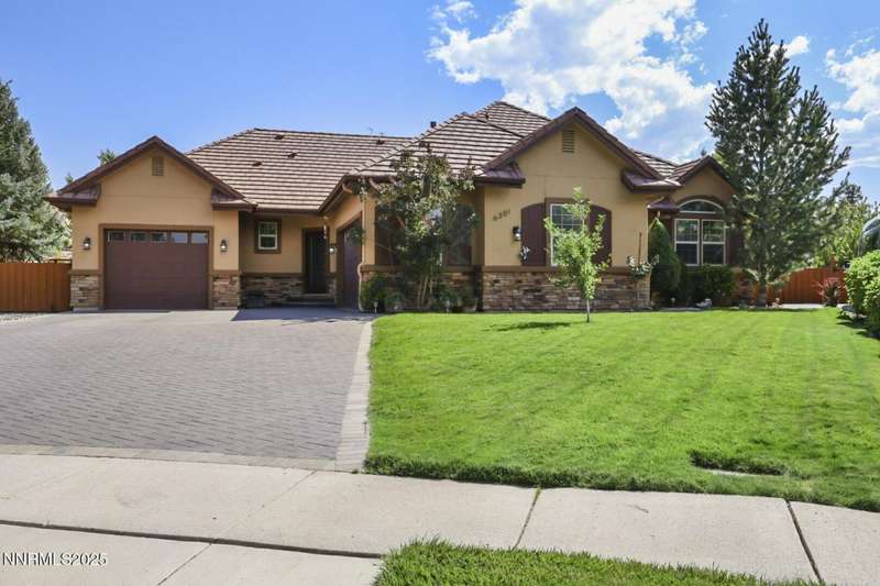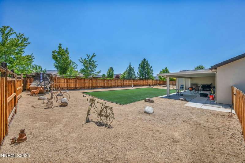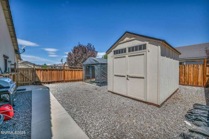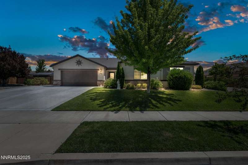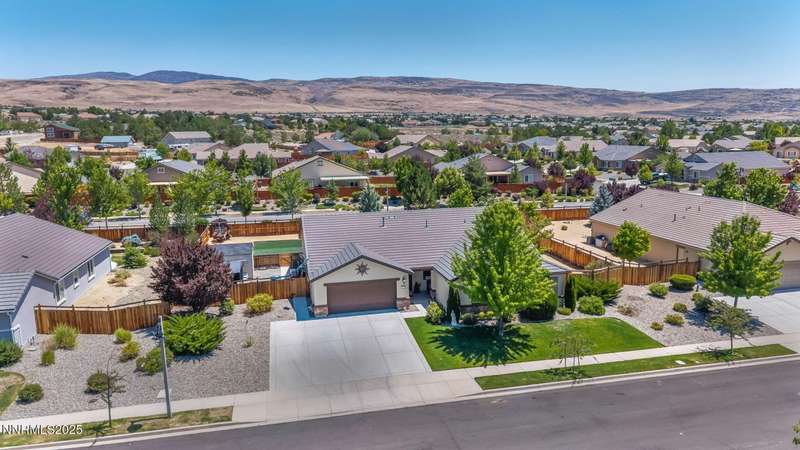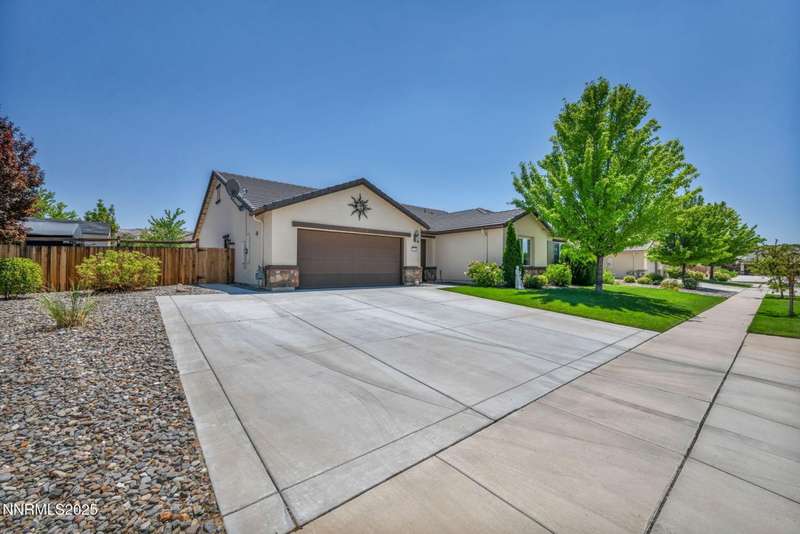Nestled in the peaceful hills of Wingfield Springs, is where you will find this beautifully maintained 10-year old home that offers an ideal layout for large or multi-generational families. With a modern stucco exterior, durable tile roof, and a spacious 3-car tandem garage, this home exudes both curb appeal and functionality. Inside, you'll find a thoughtfully designed great room floor plan featuring sleek granite countertops, crisp white cabinetry, and a large kitchen island perfect for entertaining. The expansive laundry room is outfitted with abundant storage and workspace, making everyday tasks a breeze. One of the home's standout features is the private in-law suite with it's own entrance. The spacious suite boasts a living room, kitchenette, bedroom and bathroom which is perfect for extended family, guests, or even rental potential. Offering 4 bedrooms and 3 full bathrooms, this home blends comfort and versatility. Additional upgrades include a video doorbell, frost-free hose bibs, a dog run, and a shed for extra storage. Step outside to the low-maintenance backyard and relax under the permitted 14x37 covered patio, ideal for year-round enjoyment. Take in the mountain views while enjoying the serene setting this property provides. Don't miss this rare opportunity for spacious, flexible living in one of Sparks' most sought-after communities. Seller is offering a 1 Year Home Warranty for peace of mind.