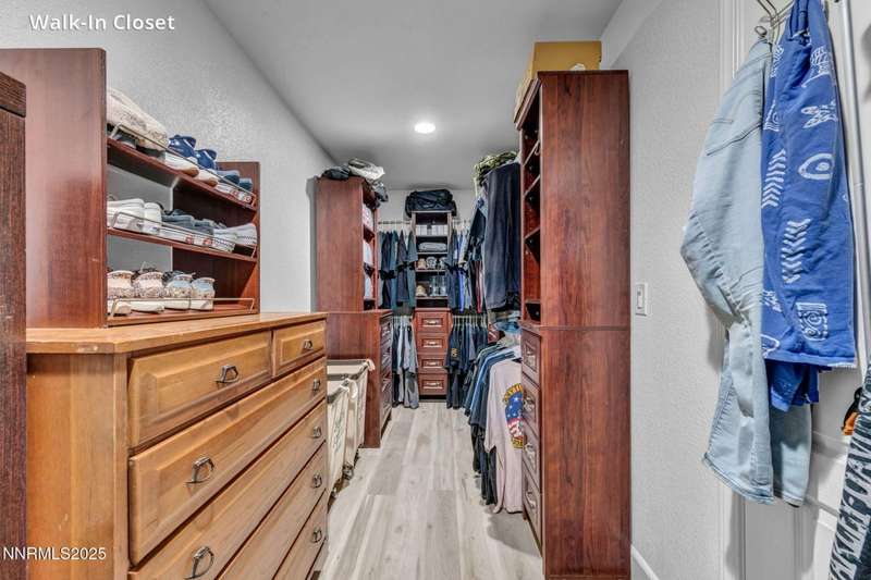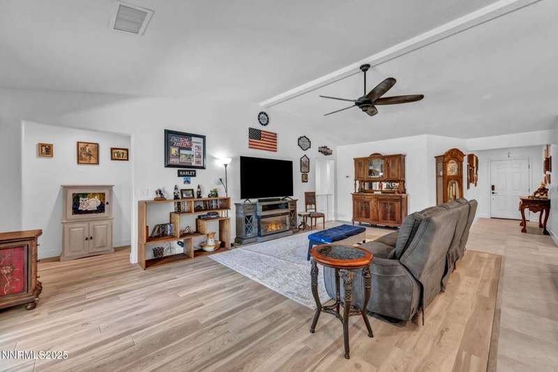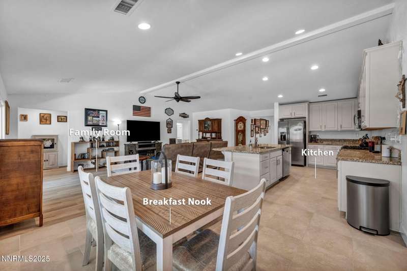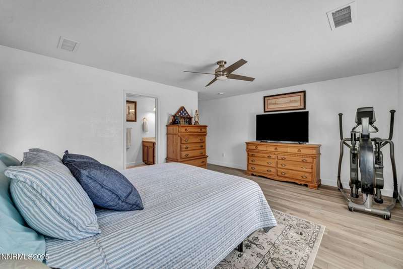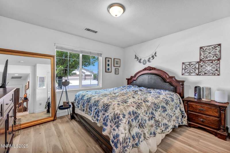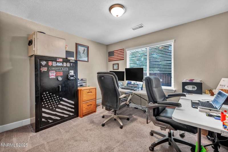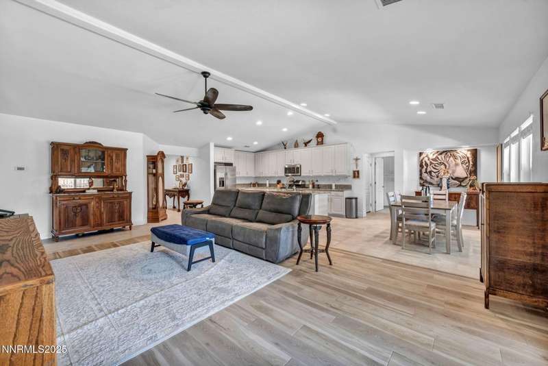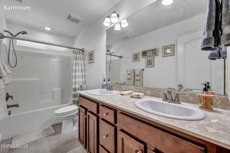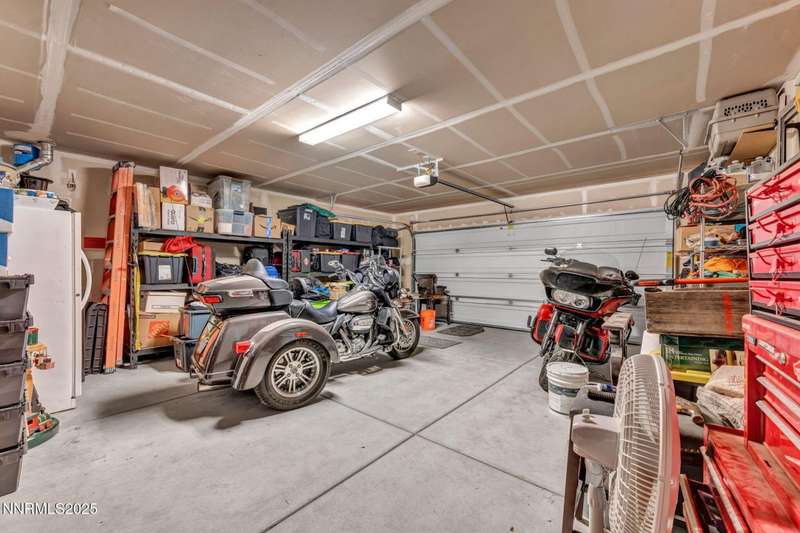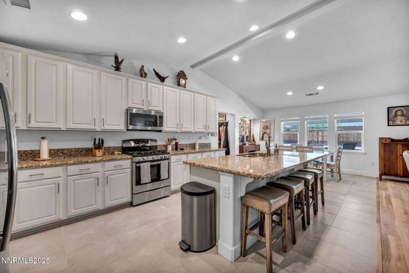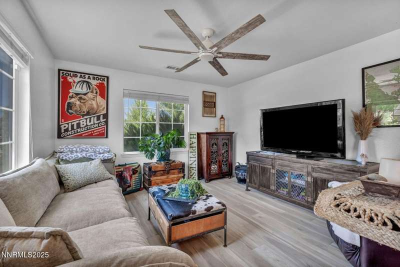 Nestled in the peaceful hills of Wingfield Springs, is where you will find this beautifully maintained 10-year old home that offers an ideal layout for large or multi-generational families. With a modern stucco exterior, durable tile roof, and a spacious 3-car tandem garage, this home exudes both curb appeal and functionality. Inside, you'll find a thoughtfully designed great room floor plan featuring sleek granite countertops, crisp white cabinetry, and a large kitchen island perfect for entertaining. The expansive laundry room is outfitted with abundant storage and workspace, making everyday tasks a breeze. One of the home's standout features is the private in-law suite with it's own entrance. The spacious suite boasts a living room, kitchenette, bedroom and bathroom which is perfect for extended family, guests, or even rental potential. Offering 4 bedrooms and 3 full bathrooms, this home blends comfort and versatility. Additional upgrades include a video doorbell, frost-free hose bibs, a dog run, and a shed for extra storage. Step outside to the low-maintenance backyard and relax under the permitted 14x37 covered patio, ideal for year-round enjoyment. Take in the mountain views while enjoying the serene setting this property provides. Don't miss this rare opportunity for spacious, flexible living in one of Sparks' most sought-after communities. Seller is offering a 1 Year Home Warranty for peace of mind.