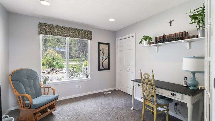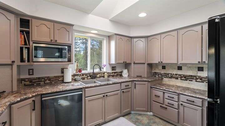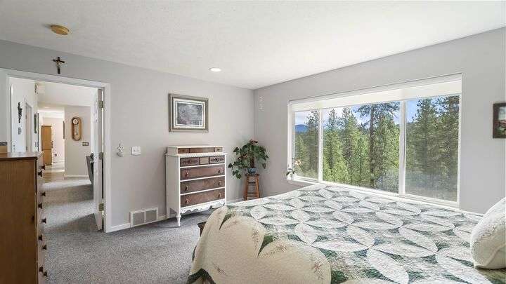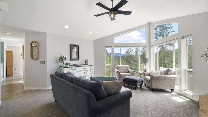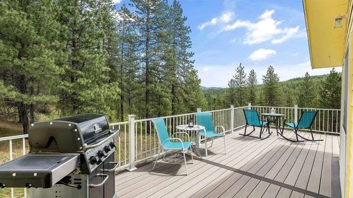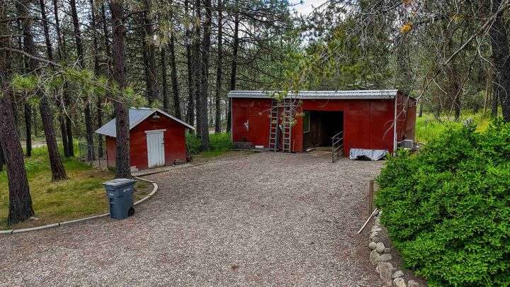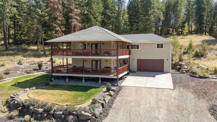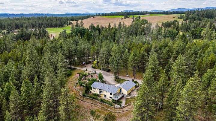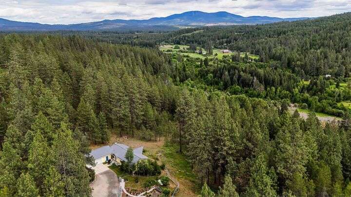 Discover your private sanctuary on 14.07 pristine treed acres with breathtaking Mt. Spokane views. Existing barn plus additional outbuilding with ample acreage for pasture development make this ideal for horses and large animals. This stunning 3-bedroom, 3-bathroom home features cozy gas fireplace, main floor utilities, spacious 2-car garage, and generator backup wiring. The walkout daylight basement includes additional kitchen for entertaining or in-law suite. Luxurious primary suite boasts ensuite bath and walk-in closet. Property showcases established vegetable garden with fruit trees including apple, pear, fig, plum, peach, and apricot. Complete sprinkler system maintains lush landscaping. With additional room for large outbuildings of your choice, plus existing trails and thriving wildlife, this exceptional retreat offers perfect blend of comfort, privacy, and natural beauty.