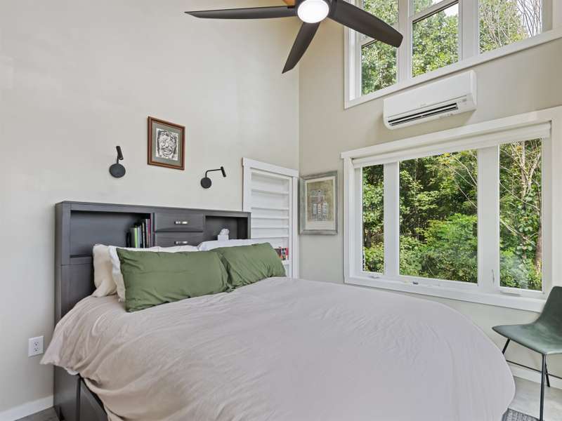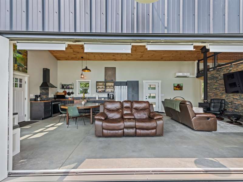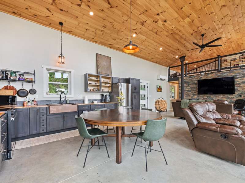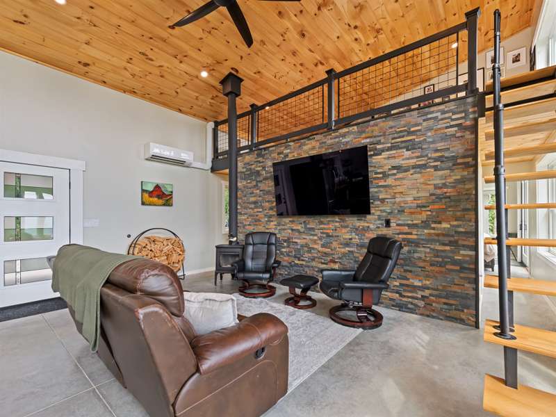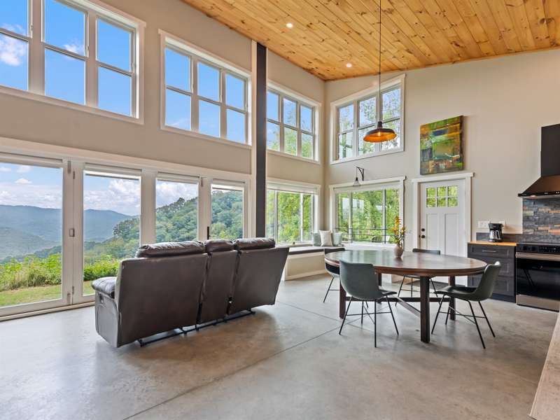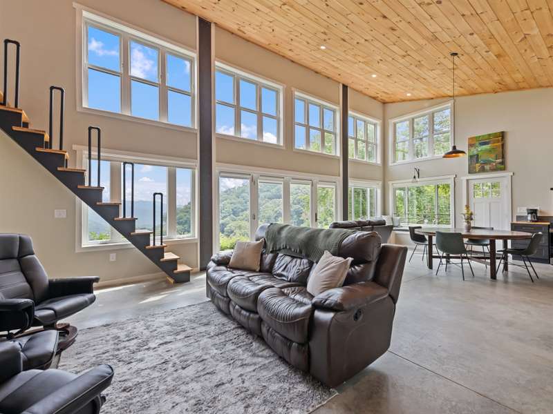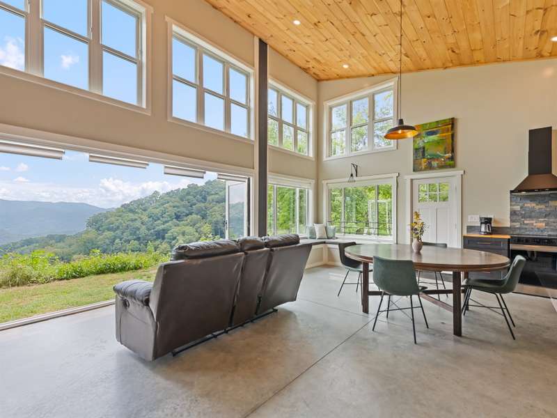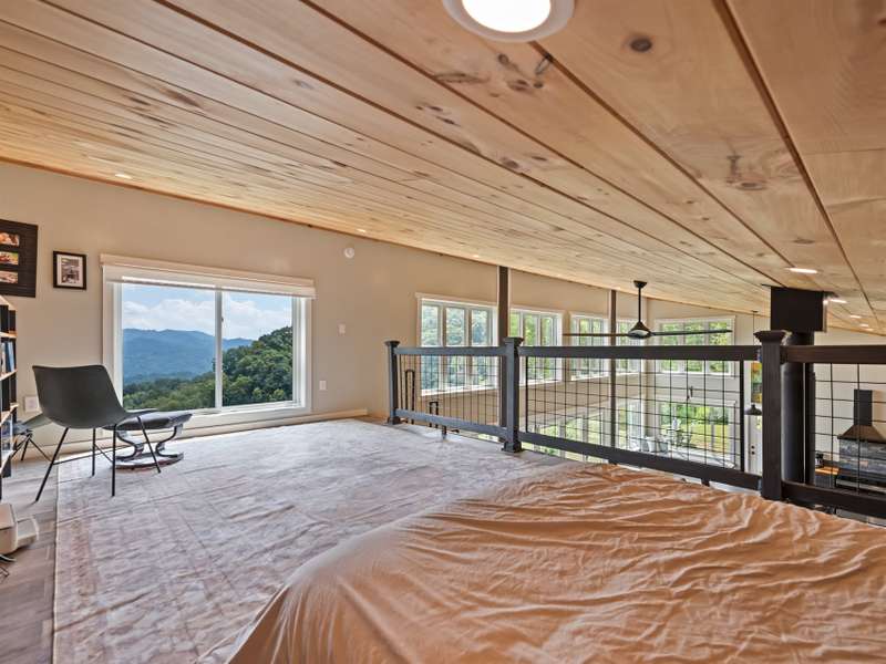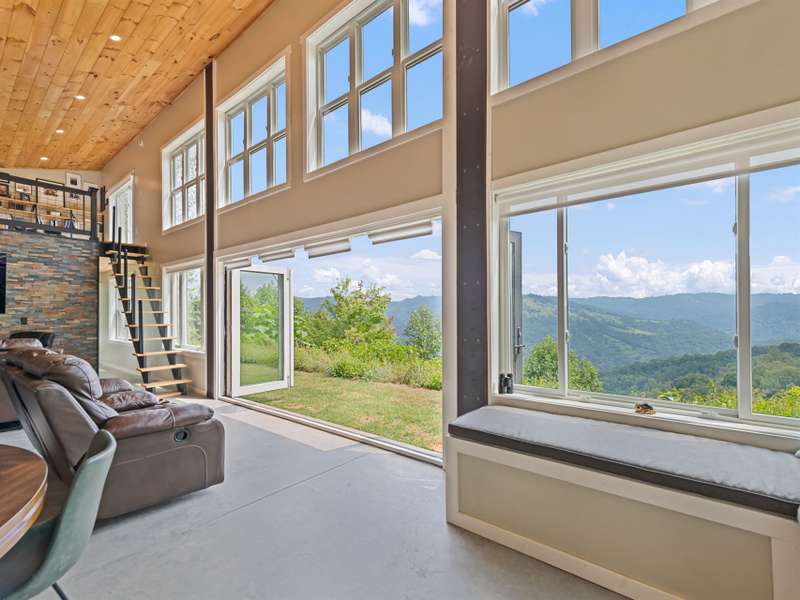 A rare modern mountain retreat with luxury design and breathtaking mountain vistas. This incredible one-year-old home captures sweeping mountain views through expansive Anderson windows, bringing the outdoors into every room. Nestled within a gated rural community, it offers pasture views and wooded privacy, along with space for gardens and future expansion. Entertain effortlessly in the open-concept living area, where accordion-style doors create seamless indoor-outdoor flow. A versatile 168 sq ft loft (not included in heated square footage) is ideal as an office, library, or guest retreat. Thoughtful details include fruit trees, an outdoor shower hookup, and an insulated well house with automatic heat lamp. A high-efficiency wood stove adds warmth and charm, supplementing the mini-split system. An outdoor enthusiasts dream-hiking on your own property, cycling or exploring the close by Parkway. Just 20 minutes from historic downtown Waynesville, outdoor adventure and convenience await.