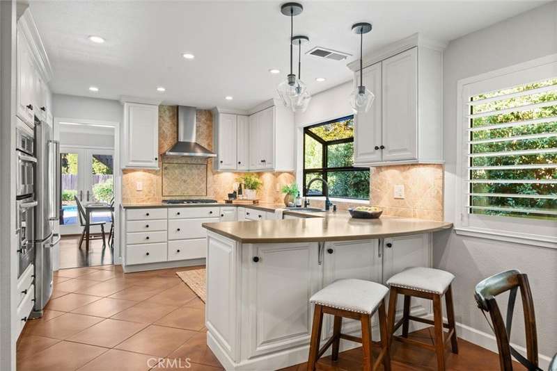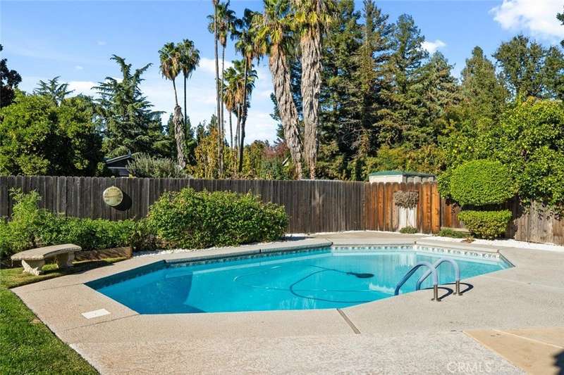 Welcome to your private oasis! This stunning four-bedroom, two-and-a-half-bathroom home perfectly balances comfort and sophistication, offering the ideal retreat for modern living. Step inside to discover dual living spaces that cater to every occasion – whether you're hosting elegant dinner parties in the formal living room or enjoying casual family movie nights in the comfortable family room. The renovated kitchen serves as the heart of the home, featuring gorgeous, honed Caesar stone quartz countertops and top-of-the-line stainless steel KitchenAid appliances. The luxurious primary bedroom spoils you with dual vanities and double closets. Three-zone radiant heated floors ensure your toes stay toasty throughout the home, while the newer heating and cooling system keeps everything perfectly comfortable year-round. Step outside to your personal paradise featuring a sparkling pool surrounded by four distinct patio areas – perfect for morning coffee, afternoon lounging, or evening entertaining. The owned solar system means you can enjoy that pool guilt-free while keeping energy costs down. Mature landscaping creates natural privacy, transforming your backyard into a true sanctuary. Additional highlights include completely renovated bathrooms, a cozy gas fireplace with striking granite surround, and an epoxy-finished garage floor that's as practical as it is attractive. The flexible fourth bedroom with a bonus space could double as an office or play space – the possibilities truly are endless. This home isn't just a house – it's your next chapter waiting to begin.