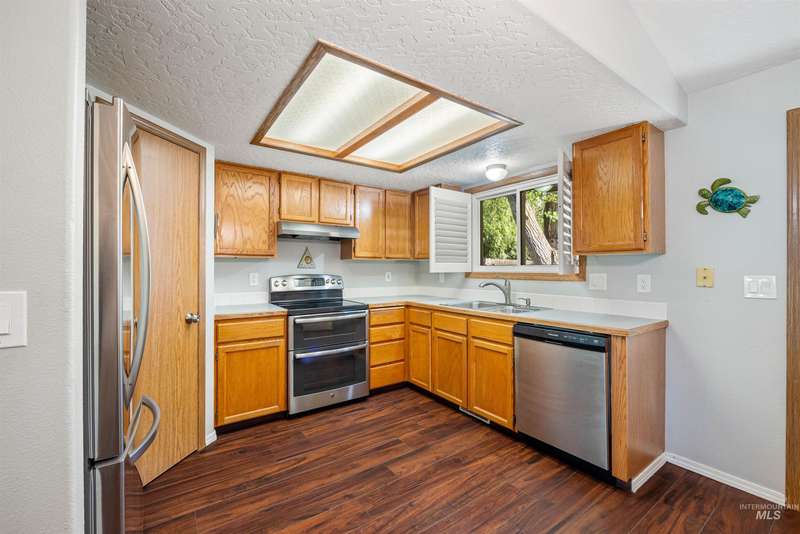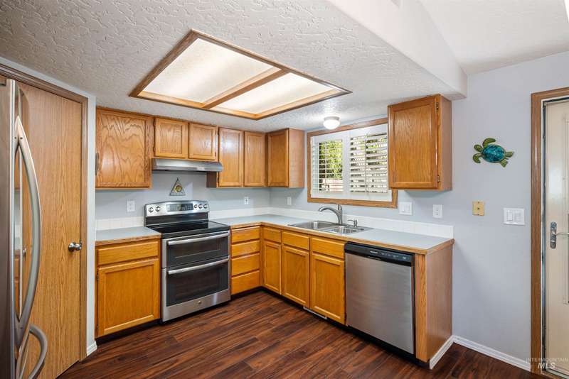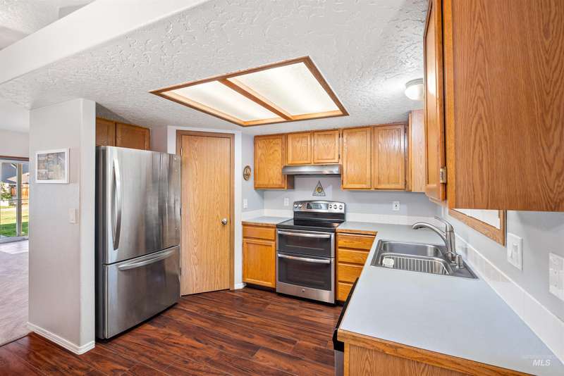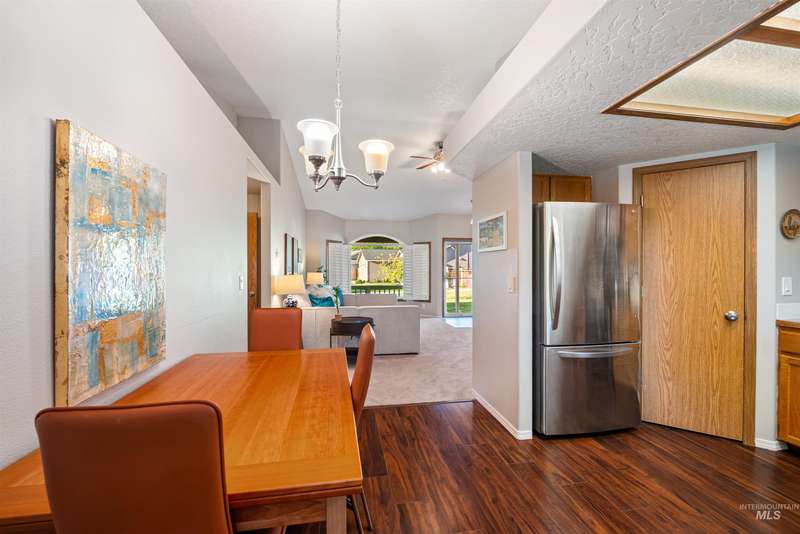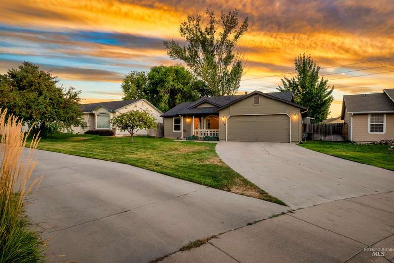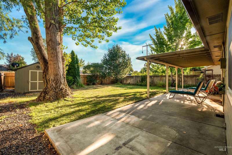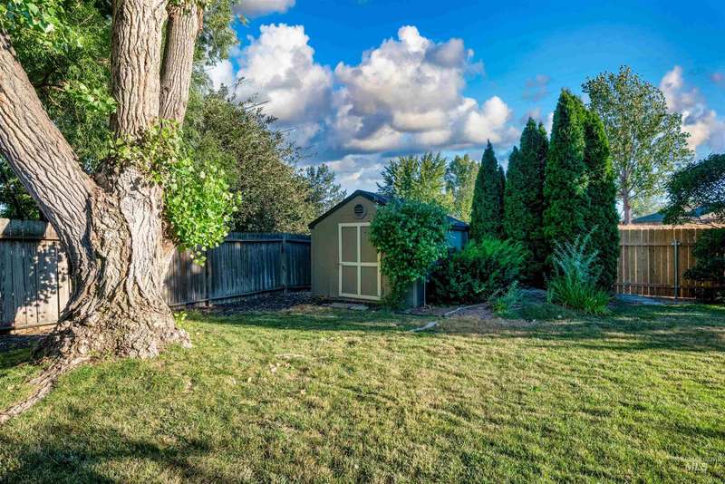 Welcome to this beautifully maintained single level home nestled in a quiet Columbia Village cul-de-sac w/ views and no rear neighbors, offering a spacious split bedroom design. This home has vaulted ceilings and a bright area atmosphere throughout. Thoughtful updates, including a newer roof and water heater ensure peace of mind. Step through the front door into a warm inviting space featuring LVP floors and new carpet. The kitchen has sleek SS appliances with double oven, large pantry and the refrigerator is included. The primary bedroom is a true retreat complete with dual sinks and a beautiful tile shower. Enjoy outdoor living at its finest with a covered patio and covered front porch, ideal for relaxing. The backyard also includes a shed for additional storage and is plumbed for a hot tub. Washer & dryer are included! Community amenities elevate this home even further offering multiple pools, a rec center, gyms, sports complex, schools and more. Conveniently located near Micron, freeway and airport.