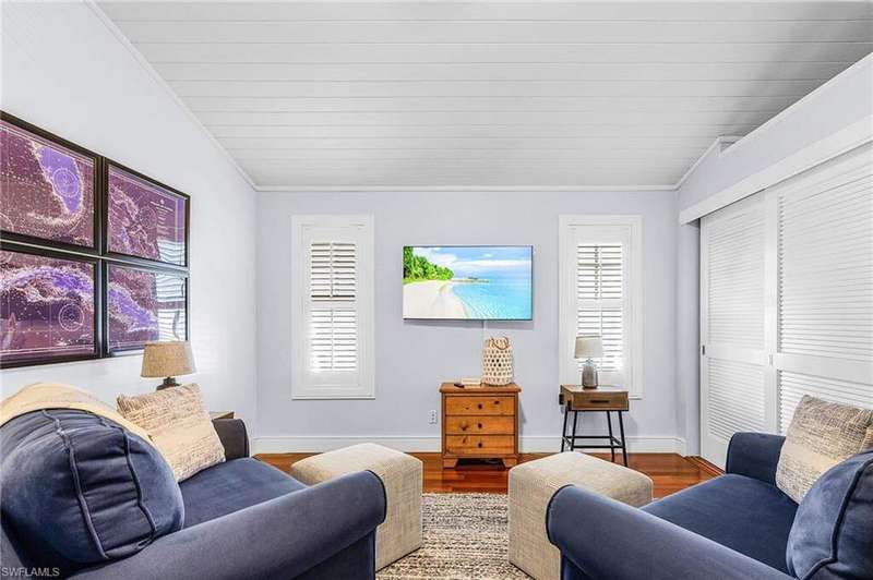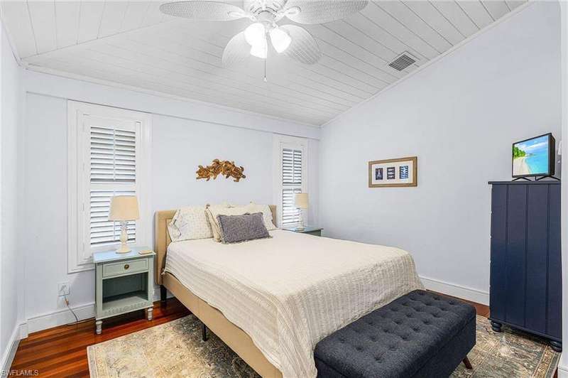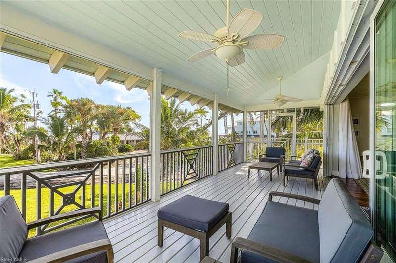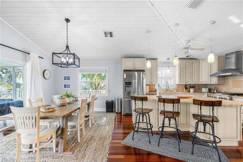 Upon walking into this updated and classic "Old Florida" home, the warmth and charm from the wood cathedral ceilings, solid mahogany floors, custom upgraded kitchen with all stainless appliances, including a wine cooler, gas cooktop, warming tray, and pantry, will make you feel as if you've ARRIVED. The hurricane sliding doors lead to the warm tropical breezes blowing through the palm trees, as you relax on your screened porch upstairs while reading a book or watching the boats coast by in Charlotte Harbor. Not to mention the quick and easy access to the Gulf with the deeded dock around the corner that can accommodate up to a 24' boat, and Boca Grande Pass the "Tarpon Fishing Capitol of the World". This impeccably maintained home has concrete block on the first floor, Hardie siding on the upper level, and a metal roof. The guest bedroom is an ensuite, with privacy for your guests, and there is a "TV room"/Den/Study upstairs that has a large closet for extra storage. The laundry has a convenient door leading downstairs to the pool. The lower level suite has a new epoxy floor and PVC wainscoting on the walls for ease in maintenance, along with a private screen porch with sliders from the bedroom and the living room. The pool has a ledge for seating with whirlpool jets, table, and built in tiki (along with a new pump and filter) is surrounded by unique bamboo fencing with lots of privacy. Make your appointment today!