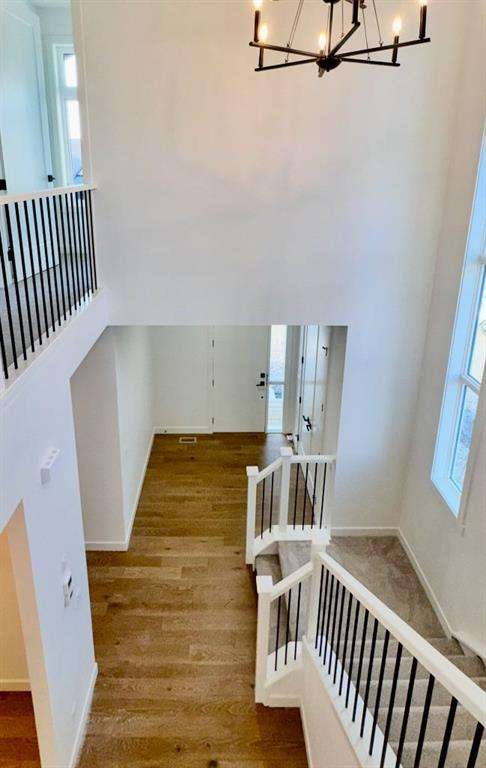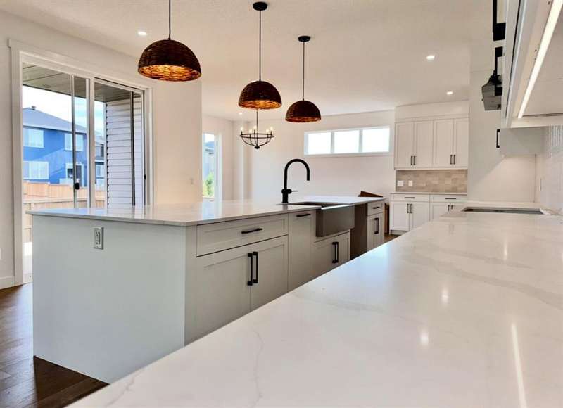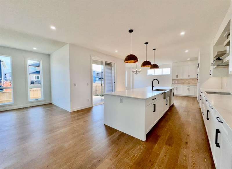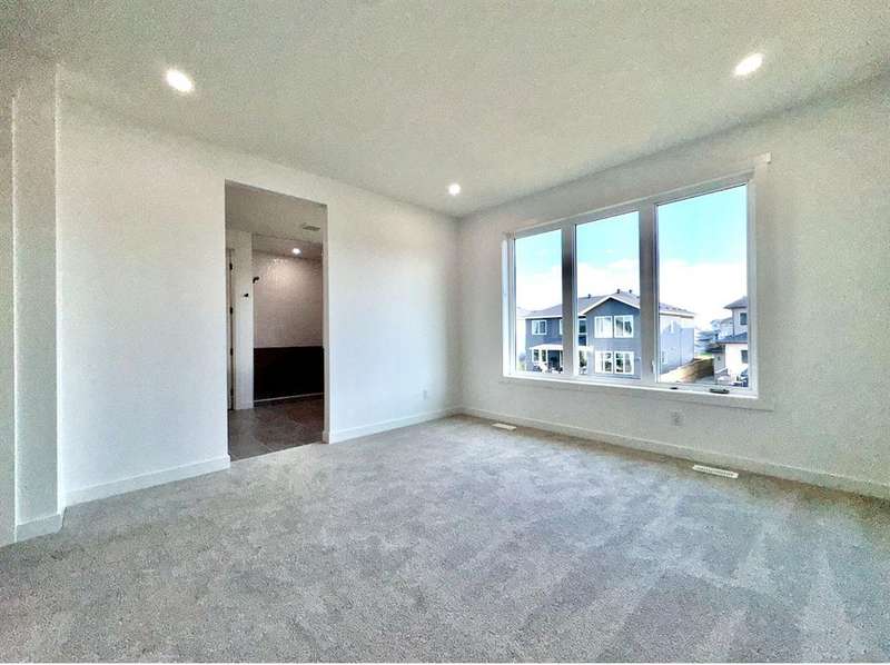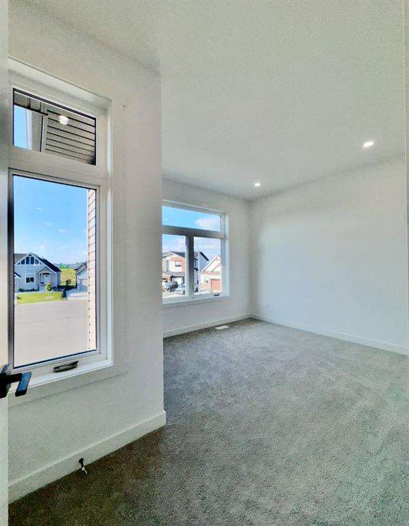 Welcome to this beautiful luxury family home nestled on a quiet cul-de-sac, this stunning property offers OVER 3,200 sq. ft. above grade with 4 BEDROOMS and 3 BATHROOMS on the UPPER LEVEL! A grand, open-to-above entry sets the tone, leading to a main floor with soaring ceilings, gorgeous flooring, and abundant natural light. The chef’s kitchen features a 6-seat island, quartz counters, soft-close cabinetry, and a walk-through pantry. The bright dining area and spacious living room—with sleek fireplace—flow seamlessly to the deck and expansive pie-shaped backyard. A versatile den/office/formal dining room and powder room complete the main level. Upstairs, the airy bonus room is perfect for family time. The primary suite boasts a walk-in closet, spa-inspired 5-piece ensuite, and direct access to the laundry room. Three additional bedrooms (including one with ensuite) plus a family bath round out the level. The triple garage easily fits vehicles and toys. Close to schools (including the new high school), shopping, golf, baseball, and tennis—just 10 minutes to Stoney Trail. This is luxury living, redefined.