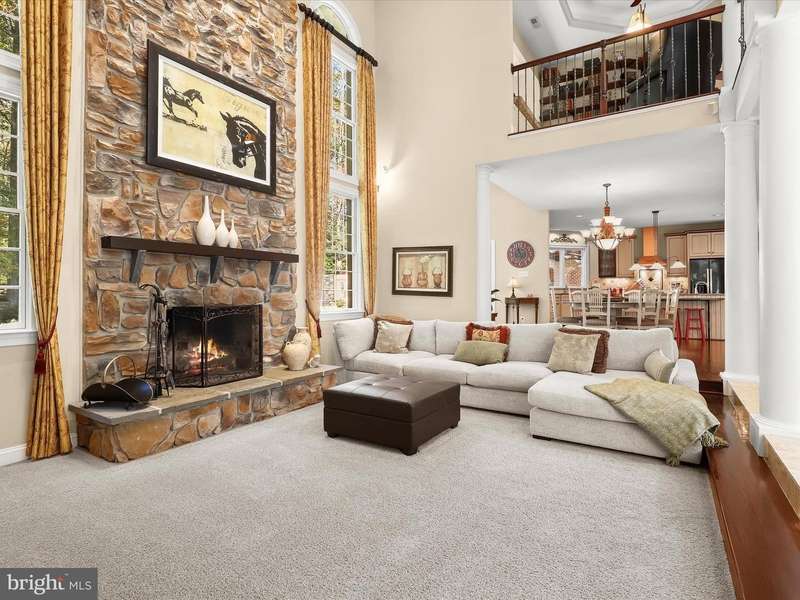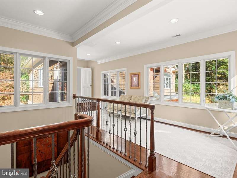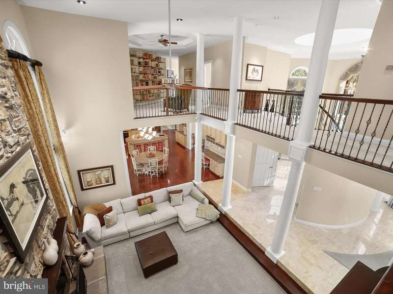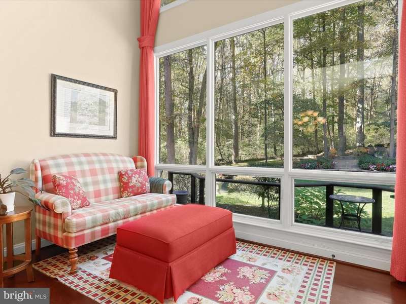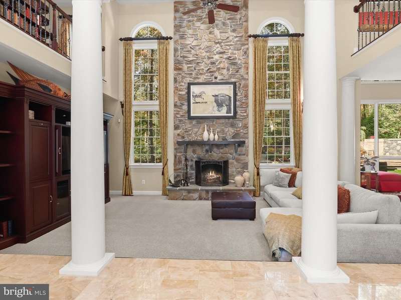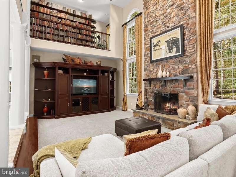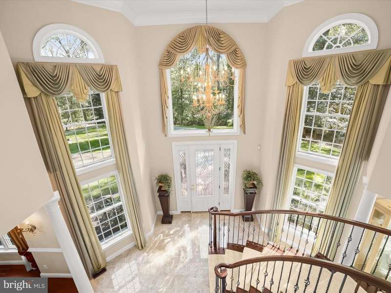 Magnificent estate in the coveted neighborhood of Triadelphia Woods that leads with its stately curb appeal, grand entertaining spaces, and considerable private quarters. Quietly set beyond a vast wooded driveway, you are welcomed to this brick and cedar home with distinguished turrets and beautiful park-like hardscaping and landscaping with Japanese Maple trees and azaleas in a private setting. Perfectly situated on over four acres, this unforgettable and custom-designed property spans over 8,000 square feet of well-curated living space with an in-law/guest suite. Sophisticated moldings, sundrenched windows, soaring ceilings, hardwood flooring, custom built-ins, and generous room sizes are just a few of the outstanding features awaiting you. The grand foyer is a breathtaking welcome to this elegant home, catching your eye immediately with its gleaming marble floors, circular skylight, and curved staircase with iron balusters. Anchored on one side of the foyer is the exquisite living room, embroidered with custom crown moldings. On the other side of the foyer is the formal dining room, a wonderful entertaining area well-suited for celebratory gatherings, highlighted by crown molding and chair railing. With an impressive two-story ceiling, the great room is a bright and comfortable room that has been outfitted with a wood-burning fireplace with a floor-to-ceiling stone surround flanked by striking stacked windows. The eat-in gourmet kitchen is spacious and well-appointed with granite counters, stone backsplash, 42-inch cabinetry with rope molding and under cabinet lighting, a center island with prep sink, high-end appliances including a gas cooktop with range hood, and additional paneled Sub-Zero refrigerator drawers in the island, planning station, and breakfast nook with two-story windows overlooking the stunning backyard. Adjacent to the kitchen is a full bath with a granite counter and an exceptional room perfectly suited for a home office, den, or main-level guest room. The main level is concluded by a powder room, laundry room with ample cabinetry, a folding counter, and sink, and a built-in drop zone. The substantial upper level is an exciting collection of 5 bedrooms, 4 full baths, and a sitting room at the top of the main stairs with a tray ceiling, bookcases, custom bench seating, overlooking the foyer and great room lined in iron balusters. Travel upstairs using one of the three staircases and into the primary suite. The primary suite is graced by a sitting room with distinguished built-in bookcases, a sizable bedroom with a slider to the upper deck, tray ceilings, and a large walk-in closet with a built-in storage system. The spa-like primary bath highlights a double vanity, jetted soaking tub, and separate floor-to-ceiling tiled shower. Three additional generously sized bedrooms, one with an en-suite bath, and a full hall bath with double vanity, conclude the main sleeping quarters. The other wing of the home offers the in-law/guest suite characterized by an expansive bedroom with window seating and river rock fireplace, wet bar with cabinetry and mini fridge, full bath, separate water, HVAC, and attic. The sprawling lower level presents an exercise room, full bath, recreation room, media room with fireplace and built-ins, custom brick arch wall inset, and wet bar with granite counters, beverage fridge, and dishwasher, ideal for entertaining. The lower level also offers walkout access, a cedar closet, and a spacious storage room. Enjoy spring and summer on the decks with modern glass panel railings that allow for an unobstructed view of the scenic backyard. Host the best outdoor gatherings on the exquisite, tiered stone patios with a waterfall and firepit. Additionally, this home features 1-car and 2-car garages with artisan doors, beautiful brick exterior archways, a custom stone parking courtyard off the circular driveway, and a climate-controlled outdoor utility room.