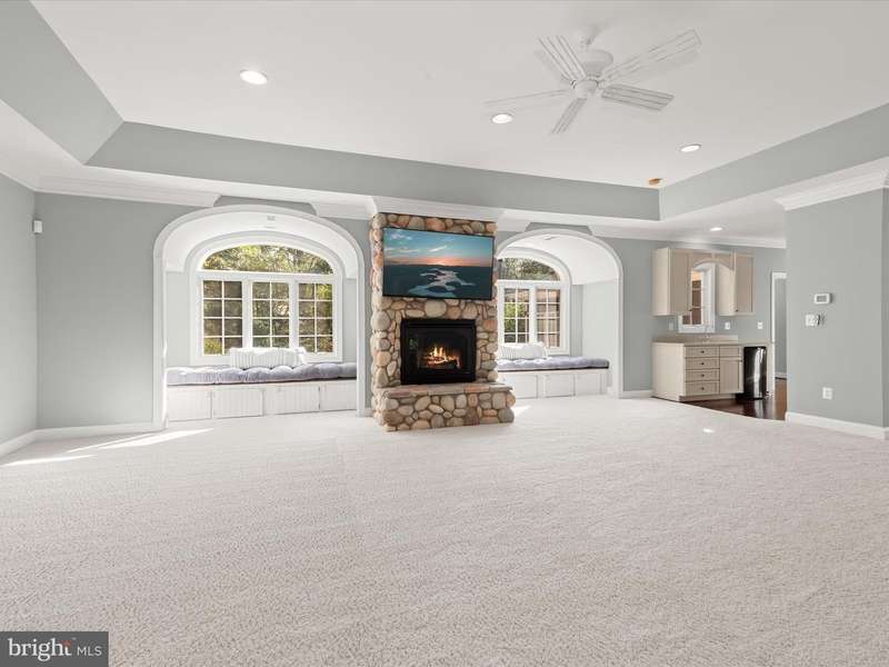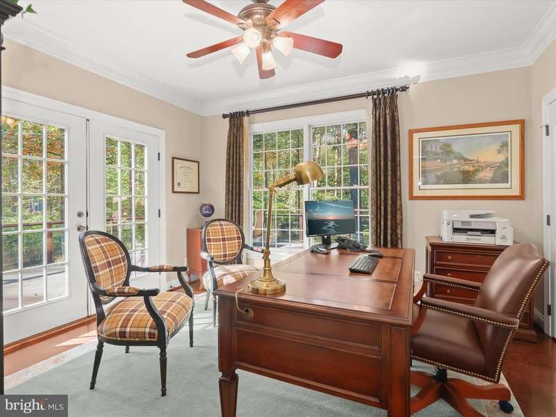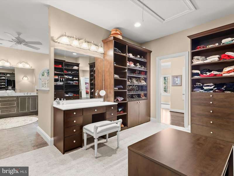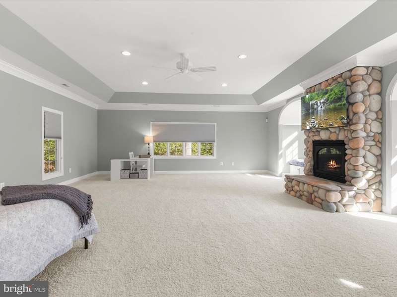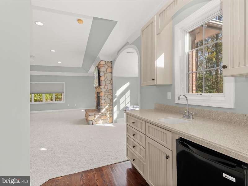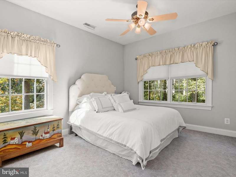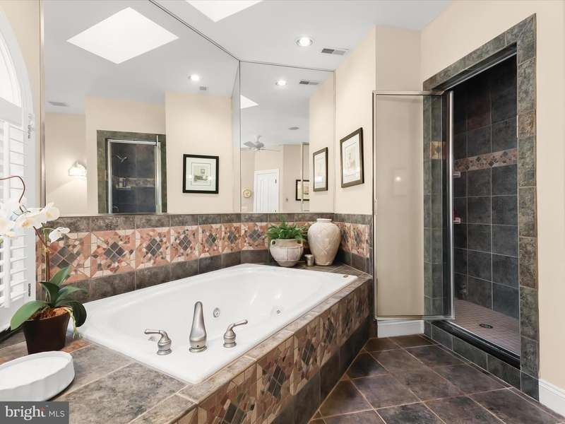 Magnificent estate in the coveted neighborhood of Triadelphia Woods that leads with its stately curb appeal, grand entertaining spaces, and considerable private quarters. Quietly set beyond a vast wooded driveway, you are welcomed to this brick and cedar home with distinguished turrets and beautiful park-like hardscaping and landscaping with Japanese Maple trees and azaleas in a private setting. Perfectly situated on over four acres, this unforgettable and custom-designed property spans over 8,000 square feet of well-curated living space with an in-law/guest suite. Sophisticated moldings, sundrenched windows, soaring ceilings, hardwood flooring, custom built-ins, and generous room sizes are just a few of the outstanding features awaiting you. The grand foyer is a breathtaking welcome to this elegant home, catching your eye immediately with its gleaming marble floors, circular skylight, and curved staircase with iron balusters. Anchored on one side of the foyer is the exquisite living room, embroidered with custom crown moldings. On the other side of the foyer is the formal dining room, a wonderful entertaining area well-suited for celebratory gatherings, highlighted by crown molding and chair railing. With an impressive two-story ceiling, the great room is a bright and comfortable room that has been outfitted with a wood-burning fireplace with a floor-to-ceiling stone surround flanked by striking stacked windows. The eat-in gourmet kitchen is spacious and well-appointed with granite counters, stone backsplash, 42-inch cabinetry with rope molding and under cabinet lighting, a center island with prep sink, high-end appliances including a gas cooktop with range hood, and additional paneled Sub-Zero refrigerator drawers in the island, planning station, and breakfast nook with two-story windows overlooking the stunning backyard. Adjacent to the kitchen is a full bath with a granite counter and an exceptional room perfectly suited for a home office, den, or main-level guest room. The main level is concluded by a powder room, laundry room with ample cabinetry, a folding counter, and sink, and a built-in drop zone. The substantial upper level is an exciting collection of 5 bedrooms, 4 full baths, and a sitting room at the top of the main stairs with a tray ceiling, bookcases, custom bench seating, overlooking the foyer and great room lined in iron balusters. Travel upstairs using one of the three staircases and into the primary suite. The primary suite is graced by a sitting room with distinguished built-in bookcases, a sizable bedroom with a slider to the upper deck, tray ceilings, and a large walk-in closet with a built-in storage system. The spa-like primary bath highlights a double vanity, jetted soaking tub, and separate floor-to-ceiling tiled shower. Three additional generously sized bedrooms, one with an en-suite bath, and a full hall bath with double vanity, conclude the main sleeping quarters. The other wing of the home offers the in-law/guest suite characterized by an expansive bedroom with window seating and river rock fireplace, wet bar with cabinetry and mini fridge, full bath, separate water, HVAC, and attic. The sprawling lower level presents an exercise room, full bath, recreation room, media room with fireplace and built-ins, custom brick arch wall inset, and wet bar with granite counters, beverage fridge, and dishwasher, ideal for entertaining. The lower level also offers walkout access, a cedar closet, and a spacious storage room. Enjoy spring and summer on the decks with modern glass panel railings that allow for an unobstructed view of the scenic backyard. Host the best outdoor gatherings on the exquisite, tiered stone patios with a waterfall and firepit. Additionally, this home features 1-car and 2-car garages with artisan doors, beautiful brick exterior archways, a custom stone parking courtyard off the circular driveway, and a climate-controlled outdoor utility room.