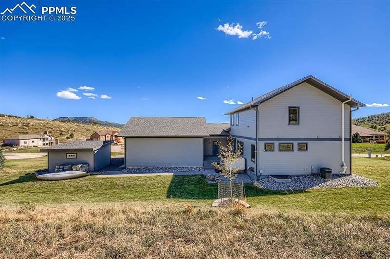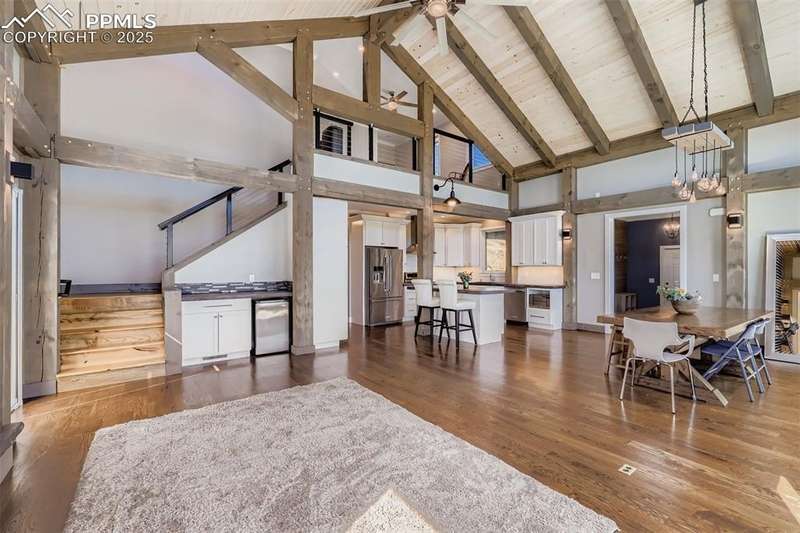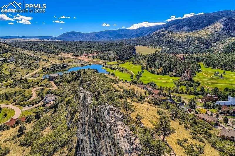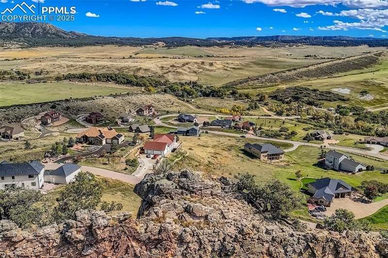 Welcome to your Colorado Dream Home, where rustic charm meets contemporary elegance. With nearly 3,800 finished sq ft, this Timber Frame Hybrid offers 4 bedrooms, 4 bathrooms, and convenient main-level living, all set on a 1-acre lot with sweeping views of Perry Park, Dawson Butte, and dramatic red rock formations. Pella windows, oak hardwood floors, and 8x8 exposed beams create a warm yet sophisticated feel. The vaulted great room with timber accents, wood-paneled ceiling, and dry bar with beverage fridge provides the perfect gathering space. The stunning kitchen features concrete countertops, custom cabinetry, tile backsplash, pantry, stainless appliances, and gas range, with a spacious island offering both prep space and casual seating. Interior Timbers are Better Eastern white pine wood. The exterior Timbers are rough sawn western red cedar. The main-level primary suite includes heated tile flooring, a spa-inspired ensuite bath, and a custom walk-in closet. Upstairs, a loft plus two bedrooms share a full bath, while the finished lower level offers a family/flex room, additional bedroom, and ¾ bath—perfect for guests or multi-gen living. Enjoy the outdoors with 2 composite decks: one with a pergola and powder-coated shutters for year-round comfort, and another showcasing panoramic views. Additional highlights include Pella windows, insulated garage with attic access, and RV parking with water/sewer/electric hookups. On demand water, steam humidifier, utility sink in basement mech room. Hail resistant architectural roof shingles by Owens Corning Duration. Hail resistant James Hardie cement board siding. Located in desirable Perry Park, one of Douglas County’s premier golf communities, this home offers access to acres of open space, trails, horse stables, and stunning natural scenery. Just 5 mins from Sandstone Ranch Open Space, 20 mins to Castle Rock, and 40 mins to DTC or Colorado Springs—this property blends privacy, beauty, and convenience.