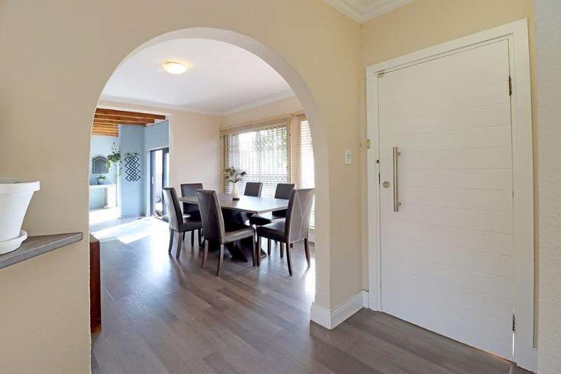 3-BEDROOM, 2-BATHROOM FAMILY HOME WITH POOL IN SECURE BOOMED AREA Situated in the highly sought-after, 24-hour security enclosure of Marais Steyn Park, this warm and inviting family home offers the perfect blend of comfort, convenience, and security. The entrance welcomes you into a sun-filled, open-plan living area, featuring a lounge/TV room with a built-in bar, open fireplace/braai area, and sleek aluminium stack doors that flow seamlessly out to the garden and sparkling pool—creating the ideal hub for family living and entertaining. A separate dining room leads to the well-equipped kitchen, boasting granite countertops, a double sink, space for a dishwasher and double-door fridge, and a large SMEG 5-plate gas stove with oven and extractor fan. A double-door linen cupboard adds extra storage. The home offers three bedrooms with built-in cupboards and laminated flooring throughout. The spacious main bedroom includes a generous en-suite bathroom with double vanity. The second and third bedrooms are serviced by a full family bathroom, with the second bedroom also featuring a ceiling fan. All blinds remain as fixtures. Additional features include: - Outside toilet and plumbed laundry space - Swimming pool and tandem carport with ample parking - 5kVA inverter, 8 solar panels, and two large 17.4kg gas cylinders - Security system with 1 x camera, panic buttons, and remote devices - Electric fencing on all four boundary walls Marais Steyn Park offers 24-hour manned security and is centrally located with easy access to major highways, excellent schools, OR Tambo International Airport, Royal and Glendower Golf Courses, and shopping centres. This property also provides room to expand—making it an excellent choice for families looking for security, convenience, and space to grow.