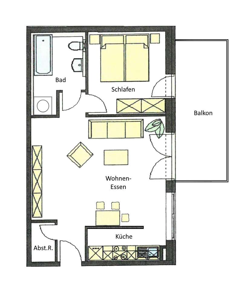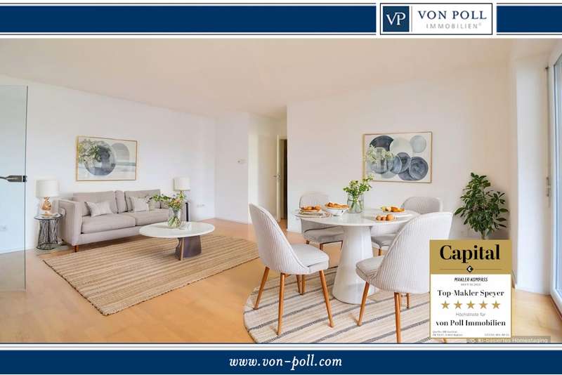 Your new home is located in a small apartment building in the heart of Speyer. The well-kept 2-room apartment is spread over approx. 57 m² of living space and is suitable for both investors and owner-occupiers. An elevator takes you conveniently to the 1st floor, where a small hallway leads you directly into the open-plan living and dining area. Floor-to-ceiling windows bring in plenty of light and the parquet flooring creates a cozy atmosphere that invites you to relax after a long day at work. The adjoining fitted kitchen is included in the purchase price and offers amateur chefs workspace and storage space. A particular highlight is the large balcony, which can be accessed from both the living room and the adjoining bedroom. The bathroom is equipped with a bathtub, underfloor heating and a washing machine connection. A storage room completes the floor plan. An underground parking space for your vehicle is available and can be purchased separately. You have additional storage space in your own cellar room in the basement.