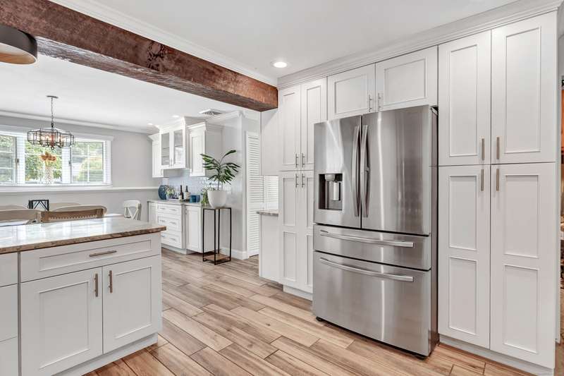 Welcome to this beautifully maintained 4 bedroom, 2 full bath home. The home is perfectly situated on a level 1/2 acre lot on a quiet street in desirable North Milford. The main level features a completely renovated and spacious kitchen, living room, and family room with an open floor plan. The inviting kitchen has an abundance of storage and room for seating, with a dining area and breakfast bar. The kitchen features custom cabinets, woodwork, crown molding, quartzite countertops, glass tile backsplash, built-in dry bar and hutch, recessed lighting, and undercabinet lighting. The updated living room has hardwood floors, recessed lighting, and custom woodwork and mantle. The family room is perfect for family movie nights or relaxing and has new carpet and recessed lighting. Off the family room, a laundry area, mudroom, and attached 2 car garage access add functionality. Enjoy the large, private yard and the spacious stone paver patio. 2 full bathrooms are updated. The bedrooms have upd